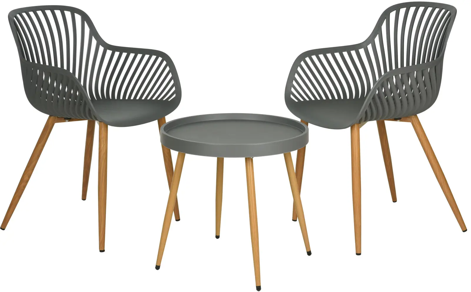 Bistro Grey svalasettið er glæsilegt húsgagnasett sem er sérstaklega hannað fyrir svalir, palla eða smærri garðhorn. Settið inniheldur tvo endingargóða stóla og eitt hringlaga borð sem sameinar skandinavíska hönnun og hagnýt gæði til að skapa notalegt útivistarrými.