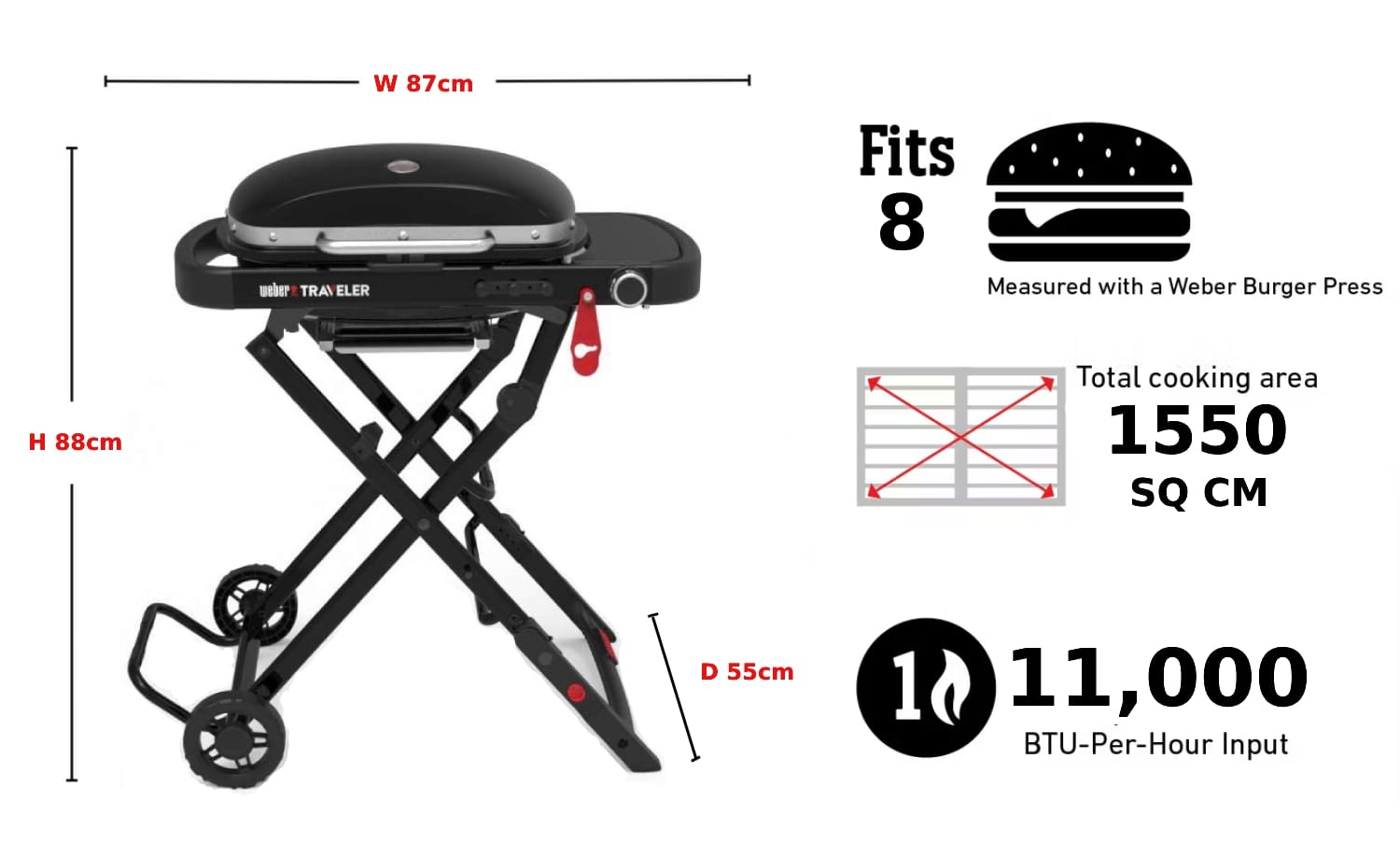 Weber Traveler Compact er 25% minna en upprunalega Weber Traveler grillið en býður samt upp á sömu frábæru eiginleika. Þetta fjölnota ferðagrill er hannað til að passa í flest bílaskott og er fullkomið fyrir útilegur, ferðalög og grillun á ferðinni. Það grillar auðveldlega fyrir 1–4 manns og er bæði auðvelt að geyma og flytja.