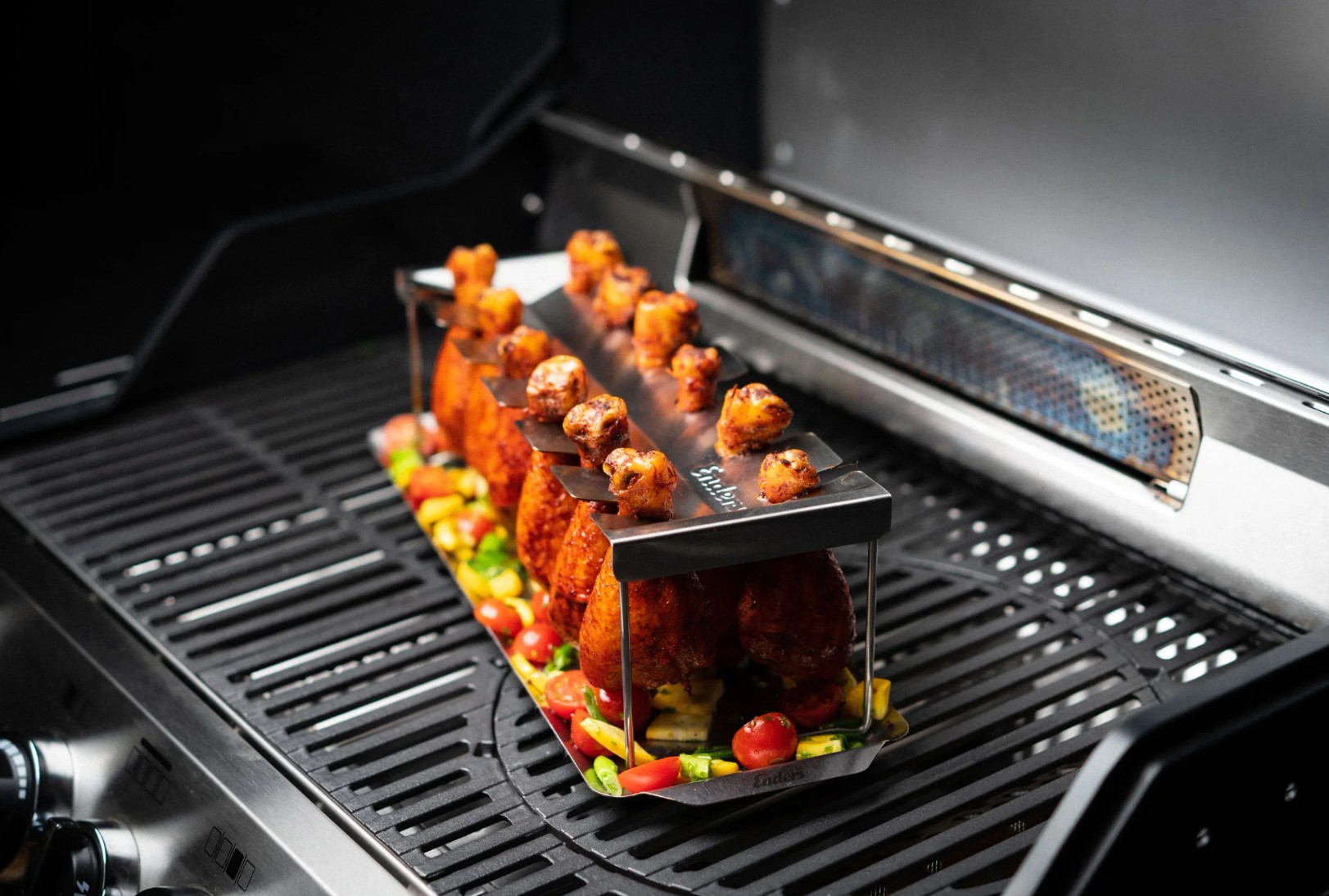 Með Enders Chicken Wing Holder verður grillviðburðurinn þinn fullkominn árangur. Haldin tryggir að þú getir grillað kjúklingavængina þína fullkomlega án þess að þeir falli eða eldist ójafnt. Ásamt öðrum gagnlegum grillaukabúnaði eins og hanskum og kebabspjótum geturðu látið sköpunargáfuna ráða og útbúa margs konar grillrétti.