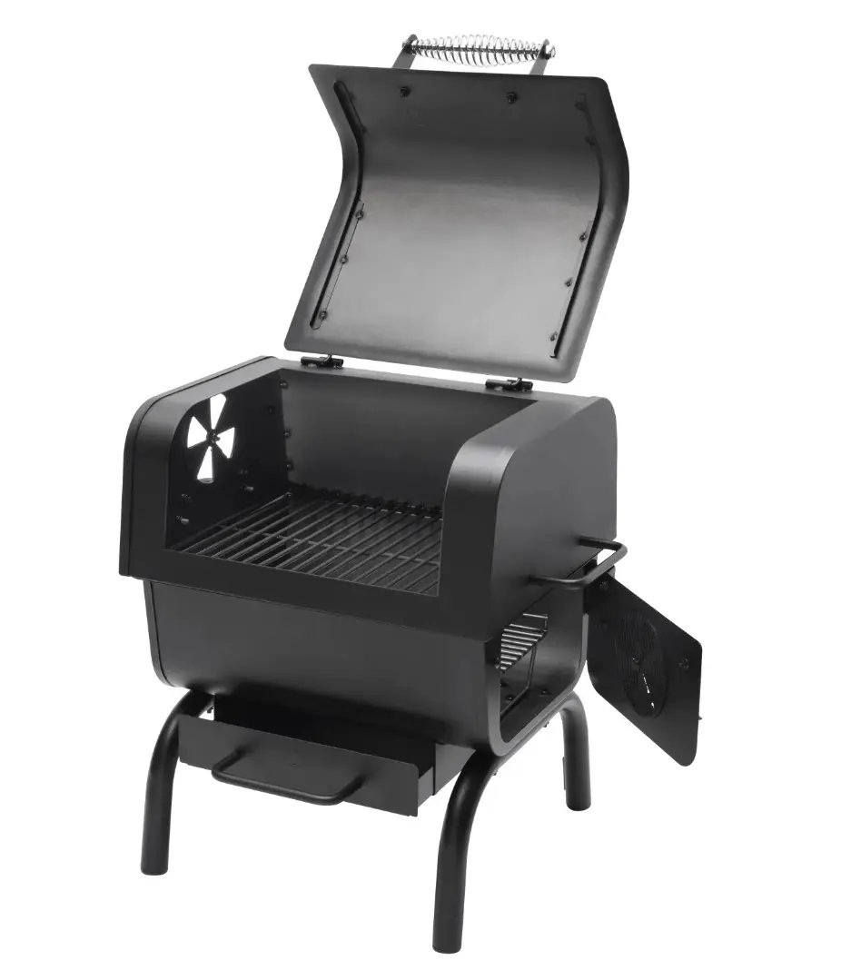 - Stillanlegt loftflæði: Loftristar á hliðum gera kleift að stýra súrefnisflæði að kolunum til að hafa stjórn á hitanum.
