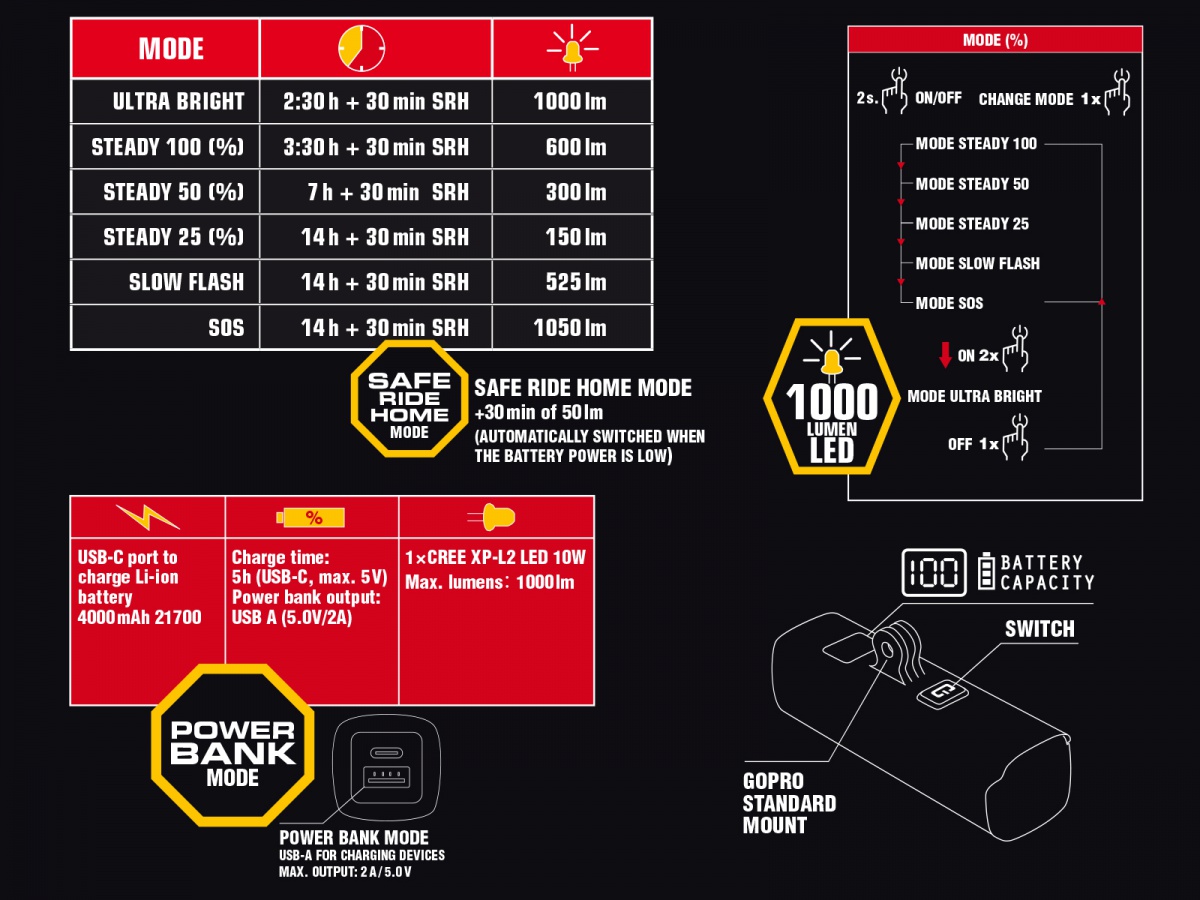 - Reiðhj. Framljós Promixa 1000 LM