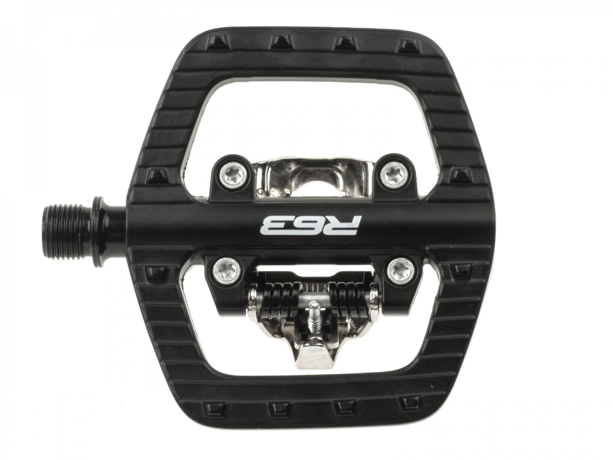 Pedalinn sameinar stillanlegar festingar á annari hliðinni