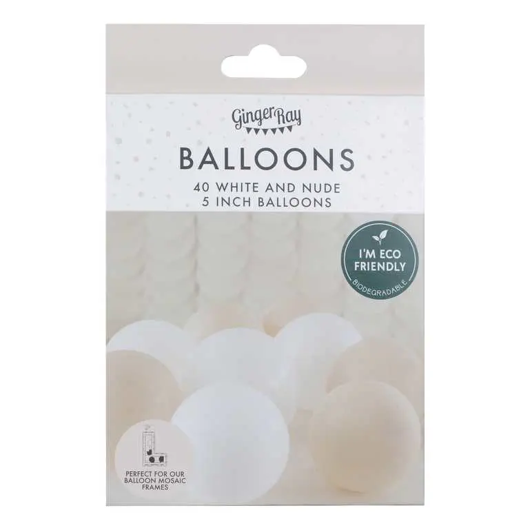 Blöðrur 5" 40stk hvítar og nude