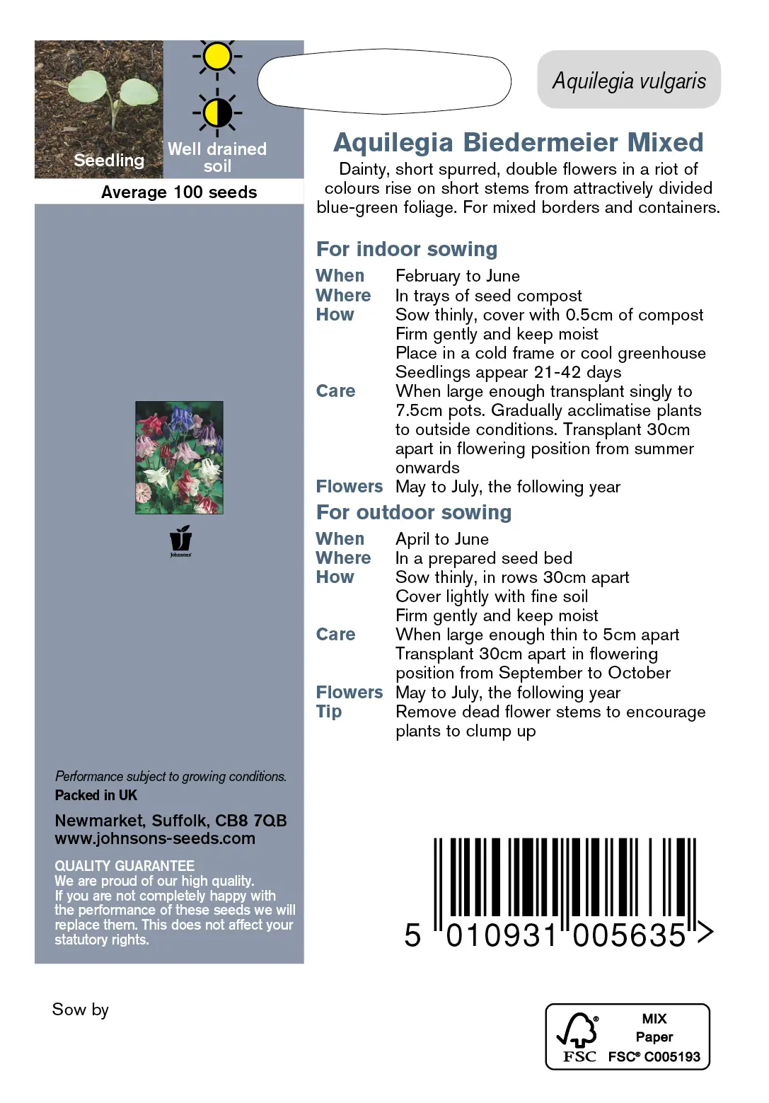 - Fræ Aquilegia Biedermeier Mixed