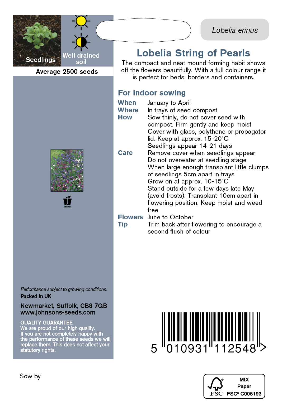 Fræ Lobelia String of Pearls