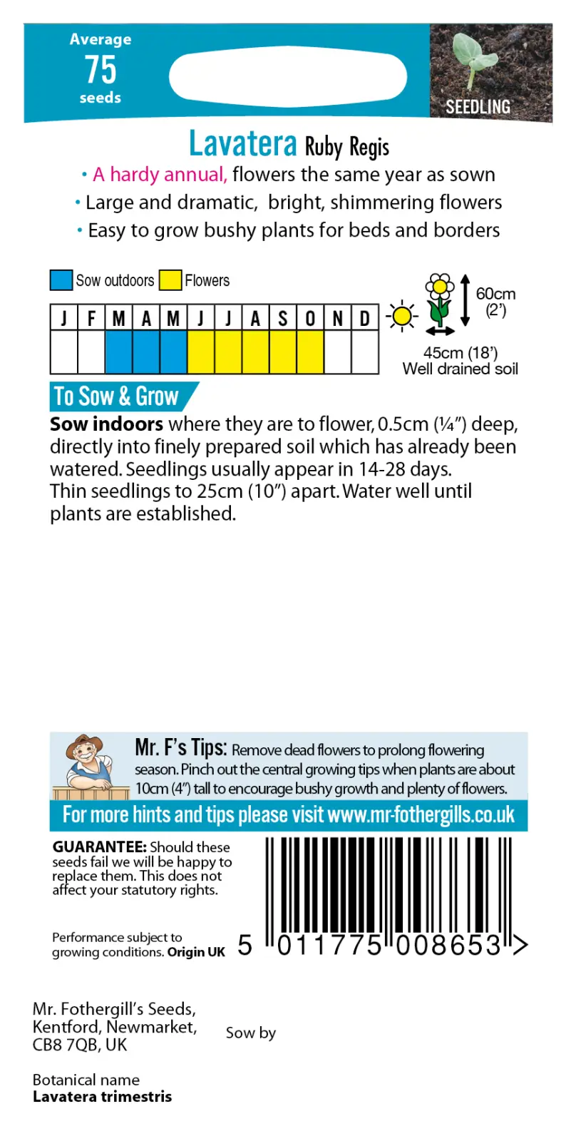 - Fræ Lavatera Ruby Regis