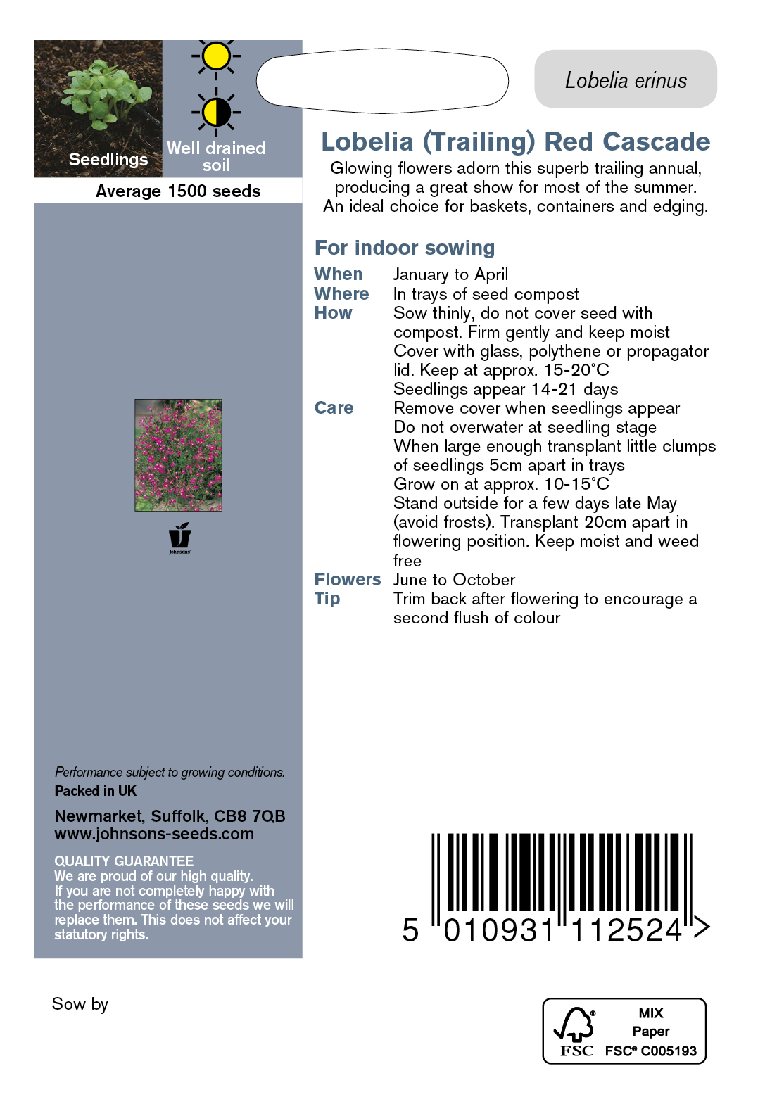 - Fræ Lobelia (Trailing) Red Cascade