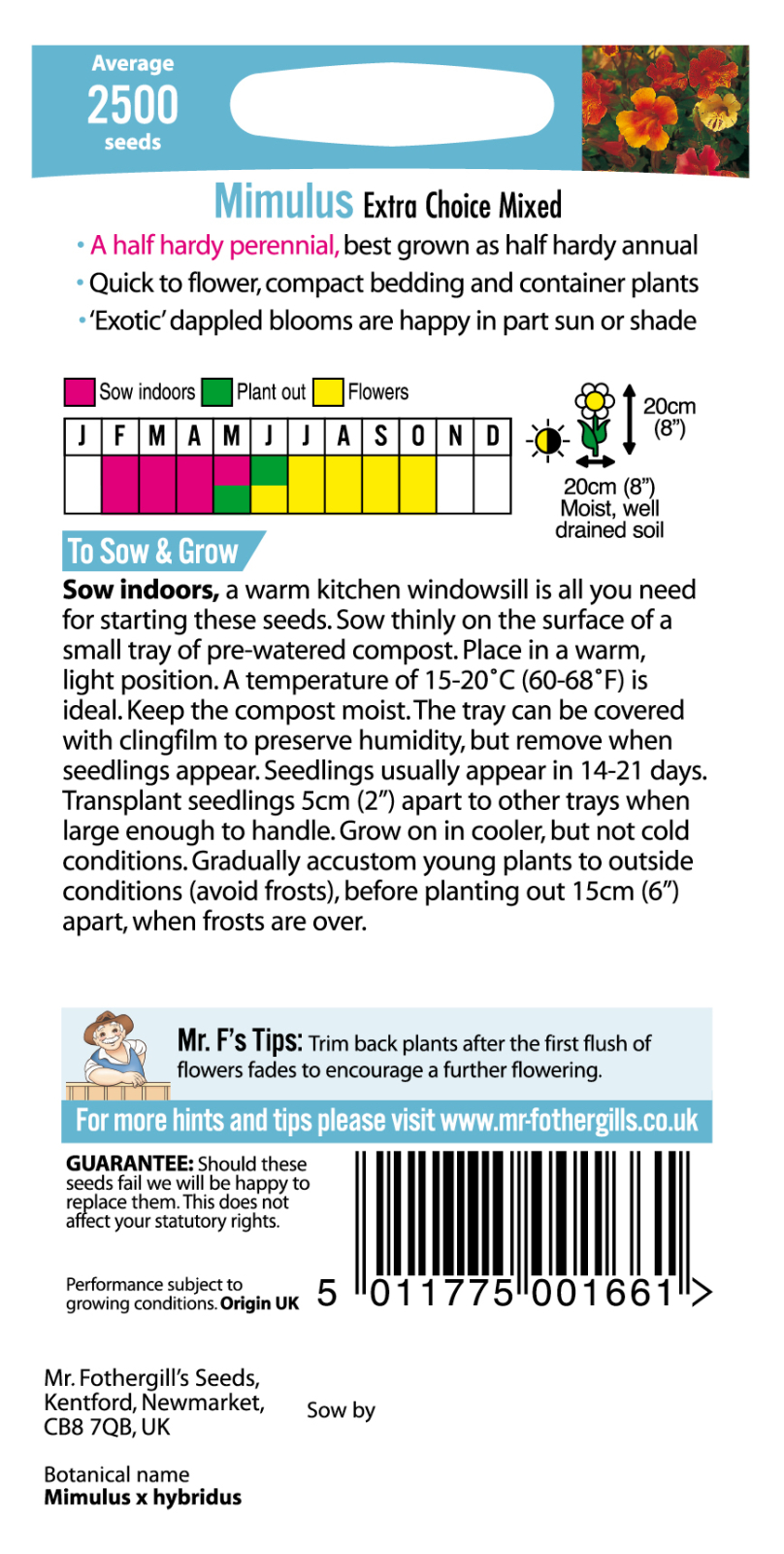 - Fræ Mimulus Extra Choice Mixed