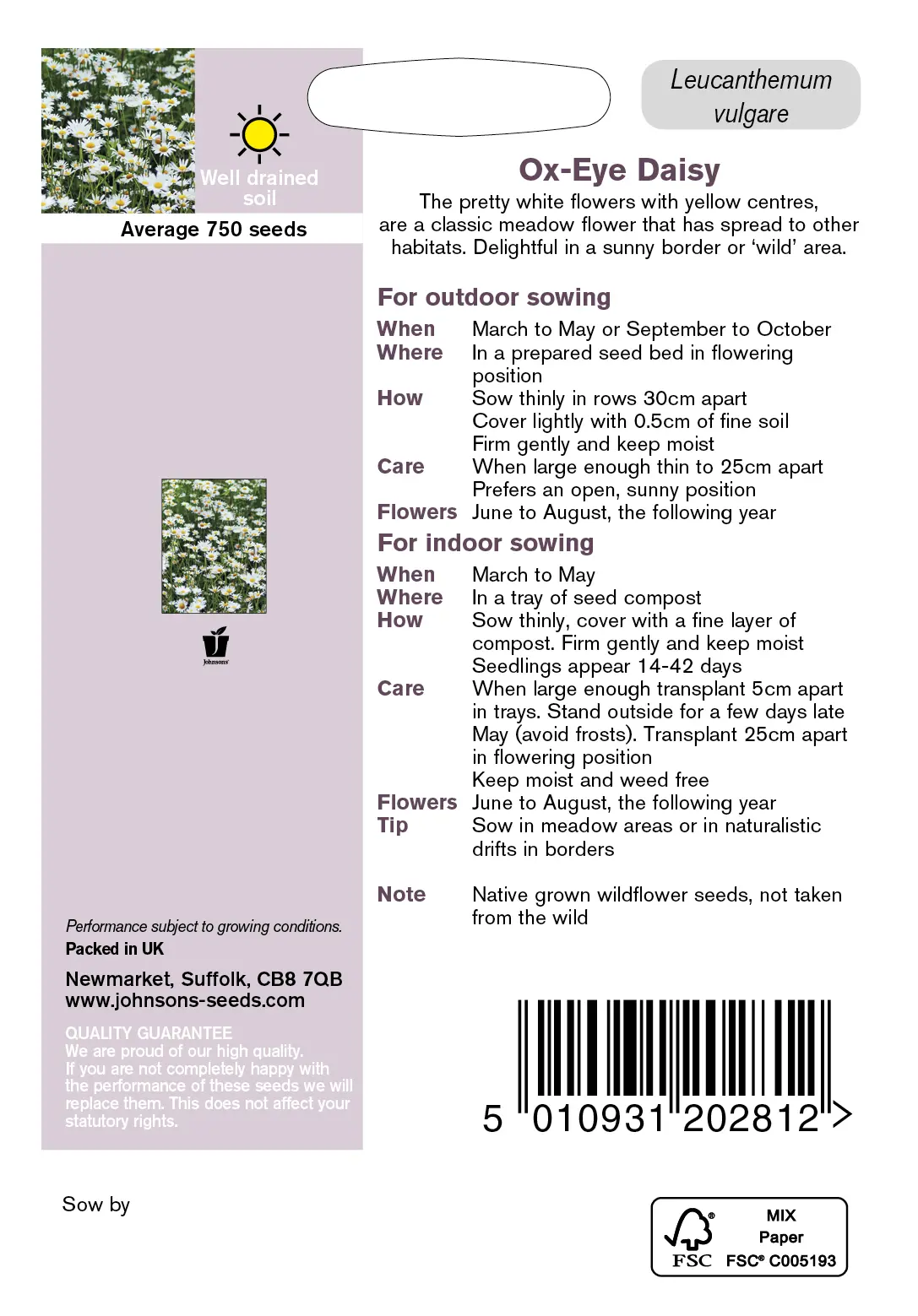 - Fræ Ox-Eye Daisy Wildflower