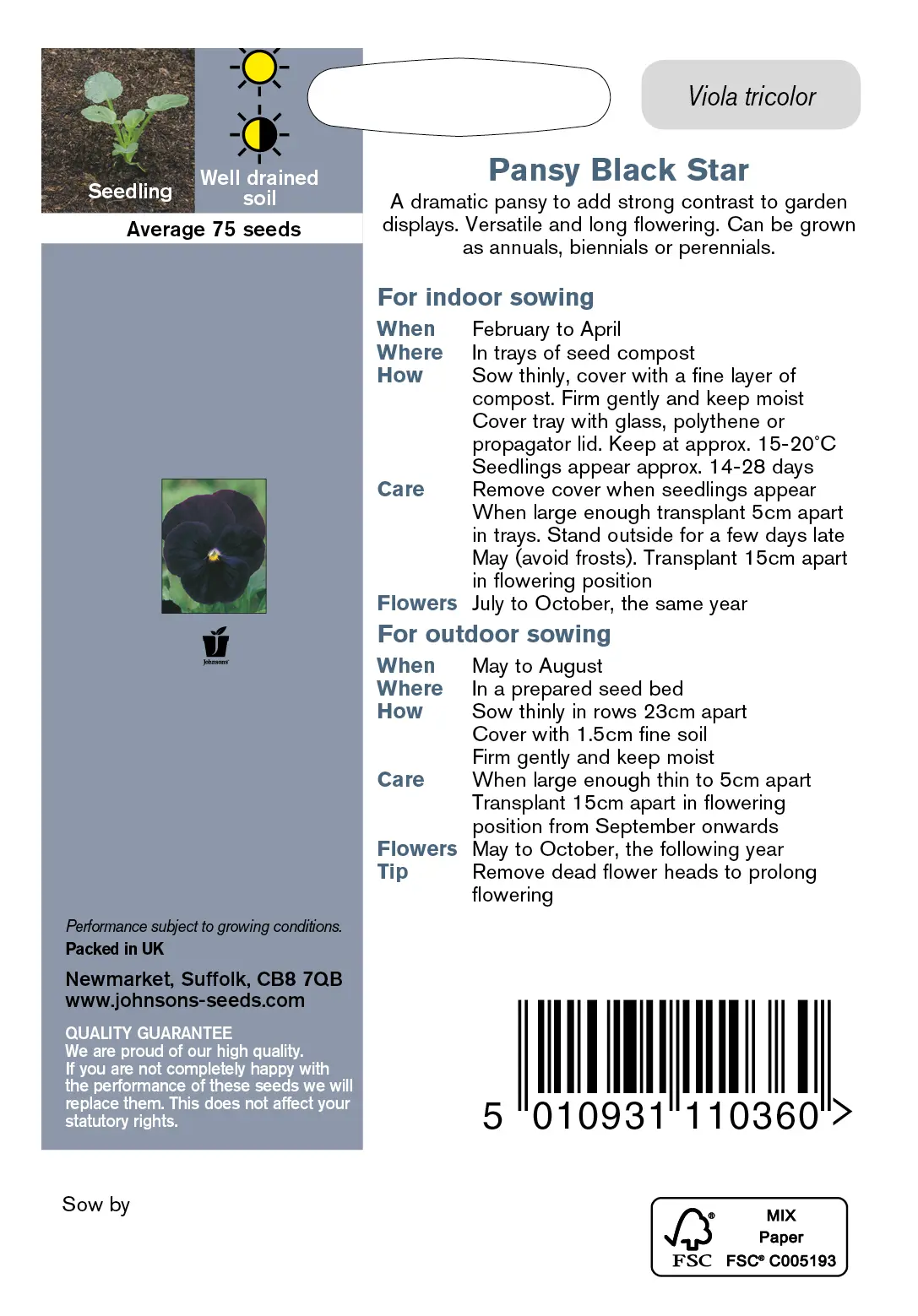 - Fræ Pansy Black Star
