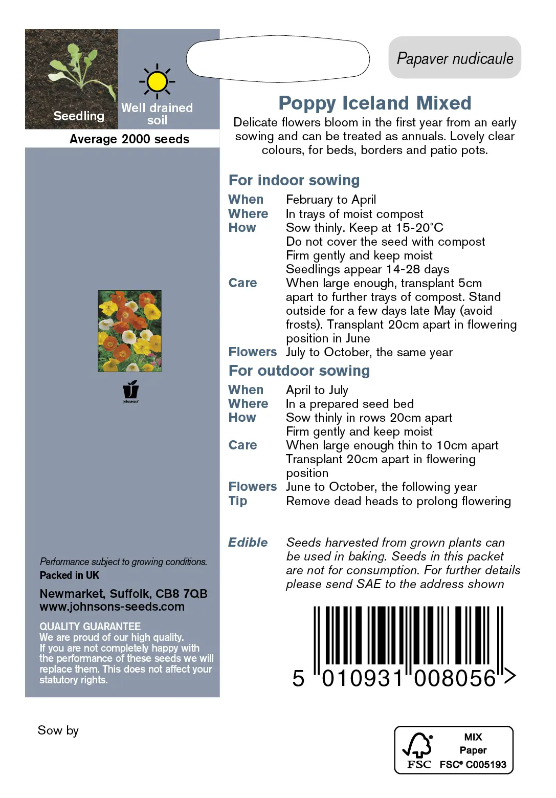 - Fræ Poppy Iceland Mixed