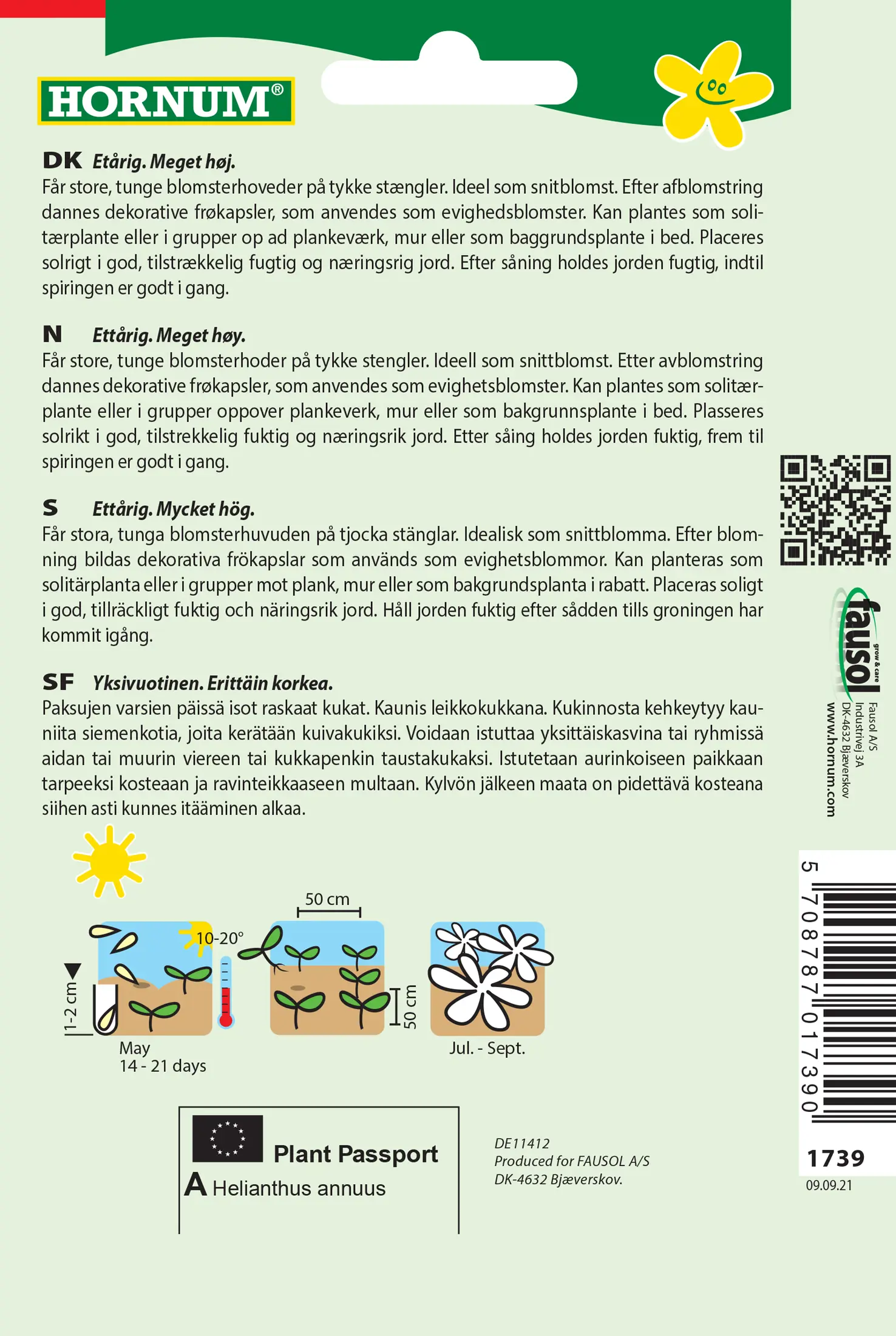 - Fræ Sólblóm Helianthus annuus Gigant