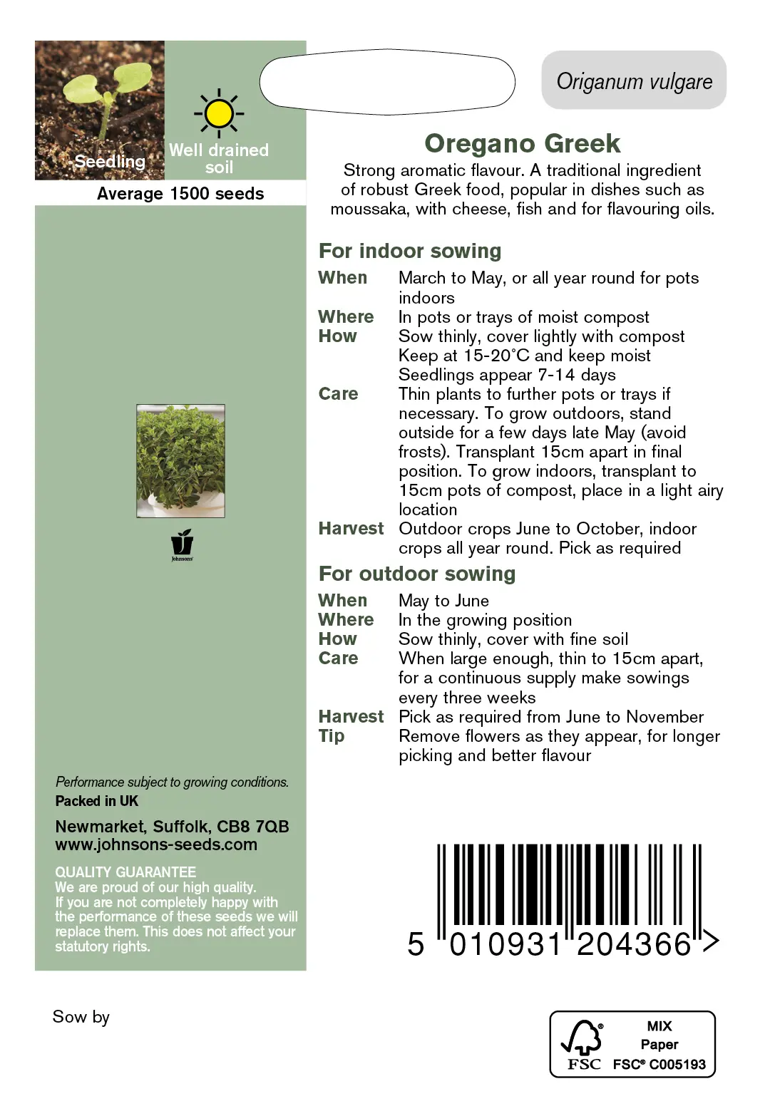 - Fræ Oregano Greek