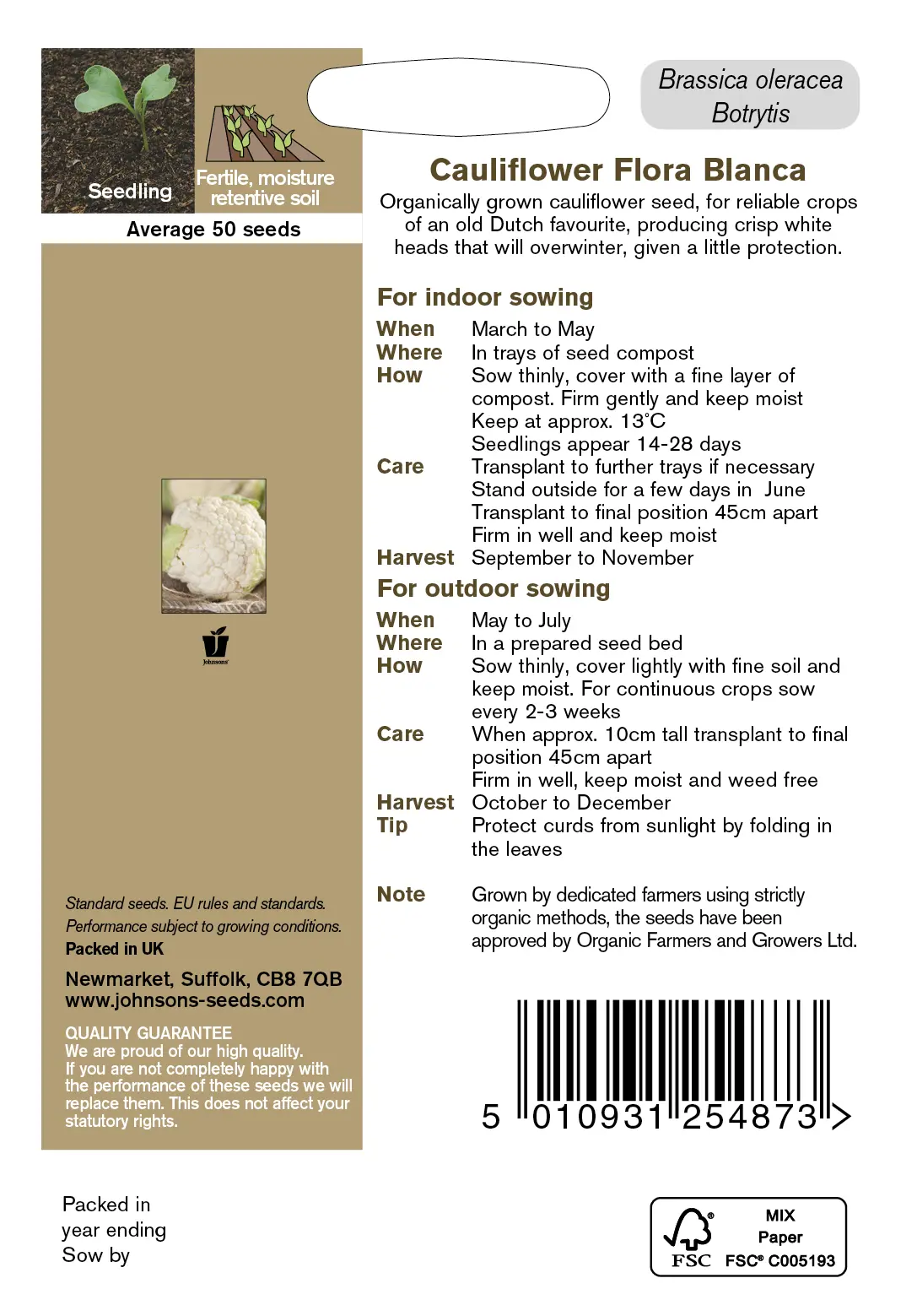 - Fræ Cauliflower Flora Blanca Organic