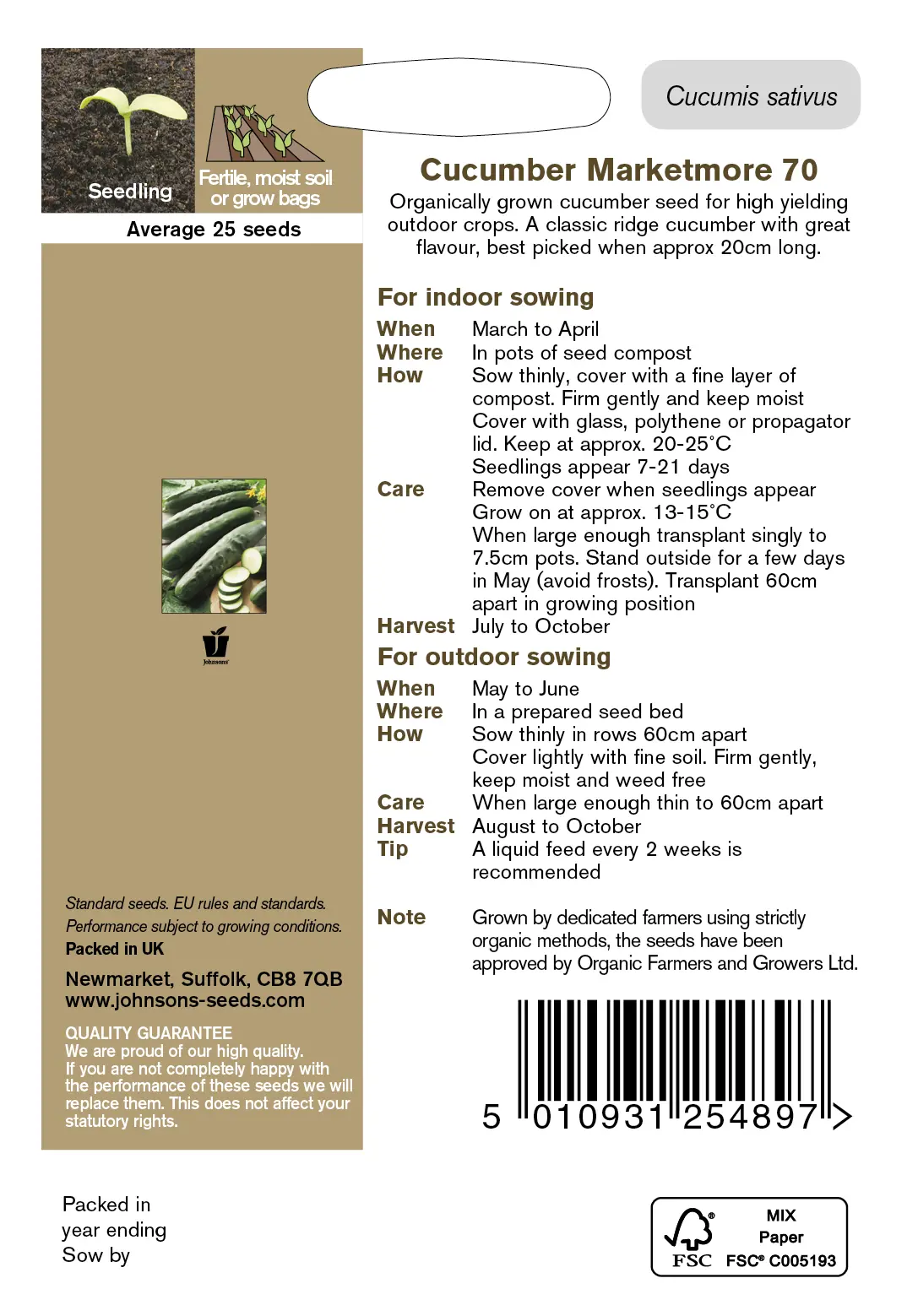 - Fræ Cucumber Marketmore 70 Organic