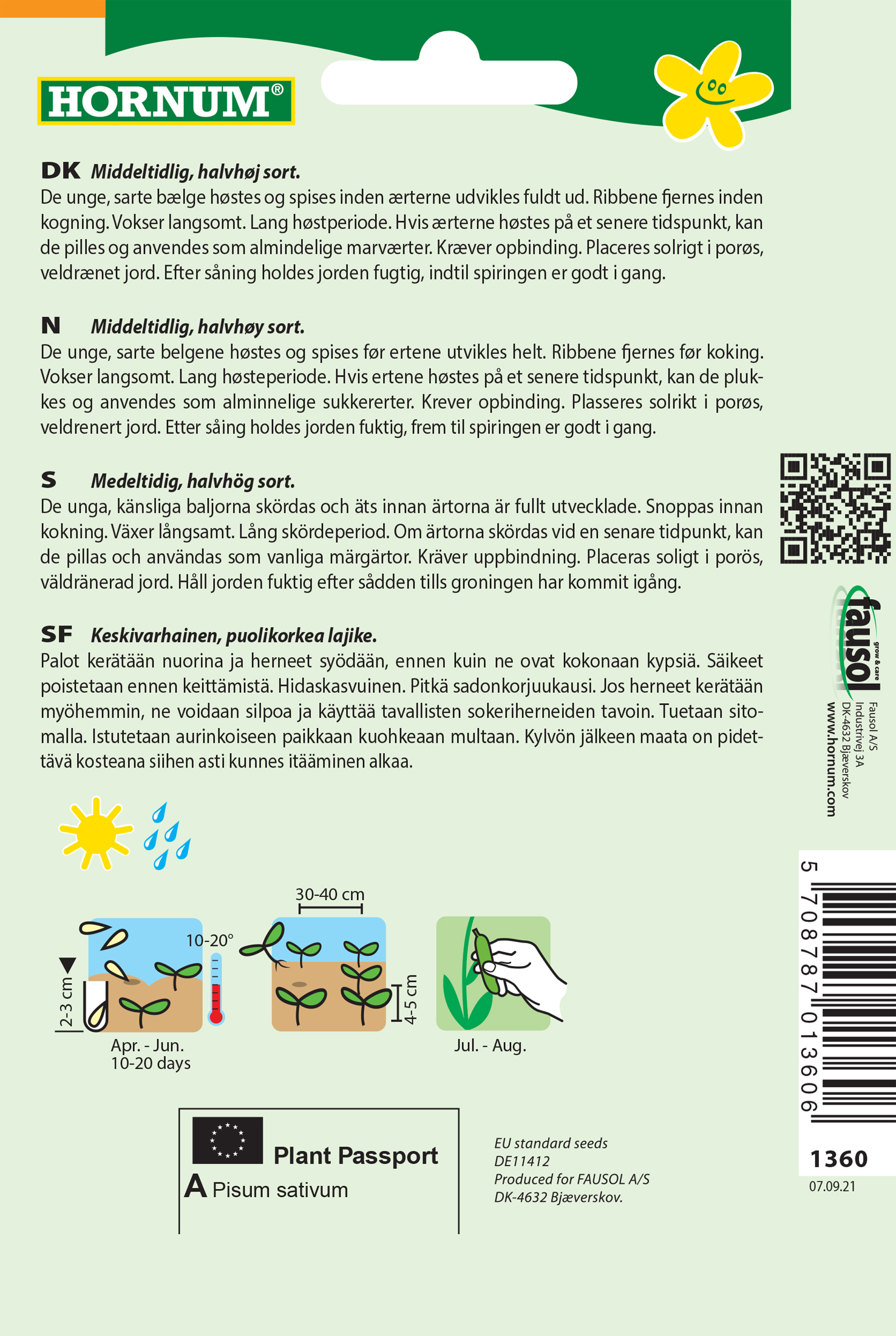 - Fræ Ertur Pisum sativum Oregon Sugar pod