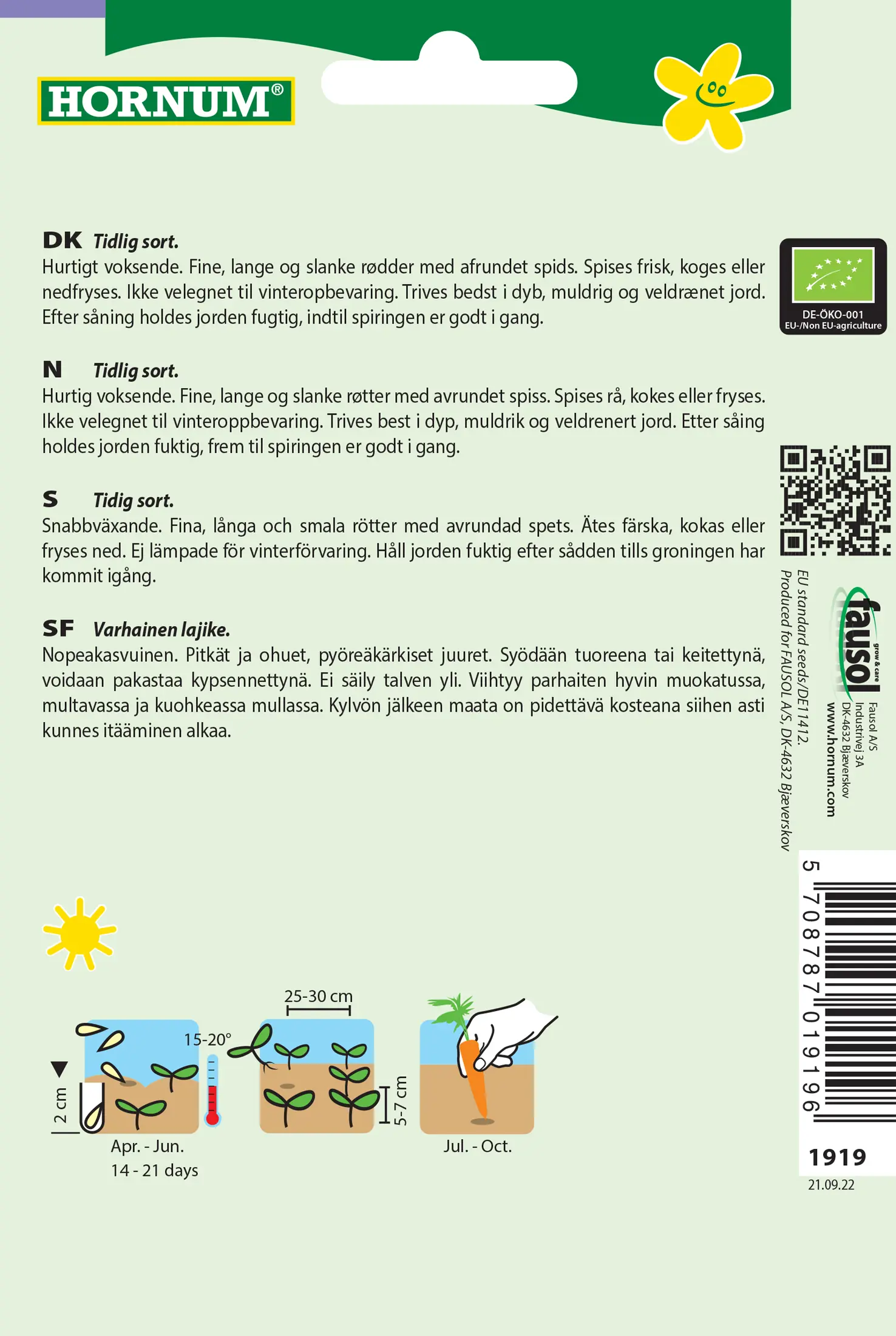 - Fræ Gulrætur Daucus carota Nantaise 2 lifrænt