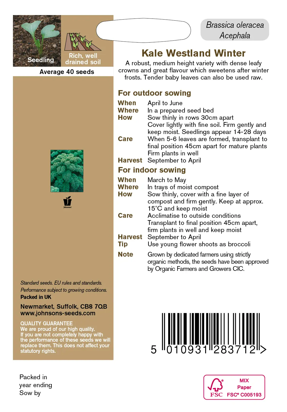 - Fræ Kale Westland Winter Organic