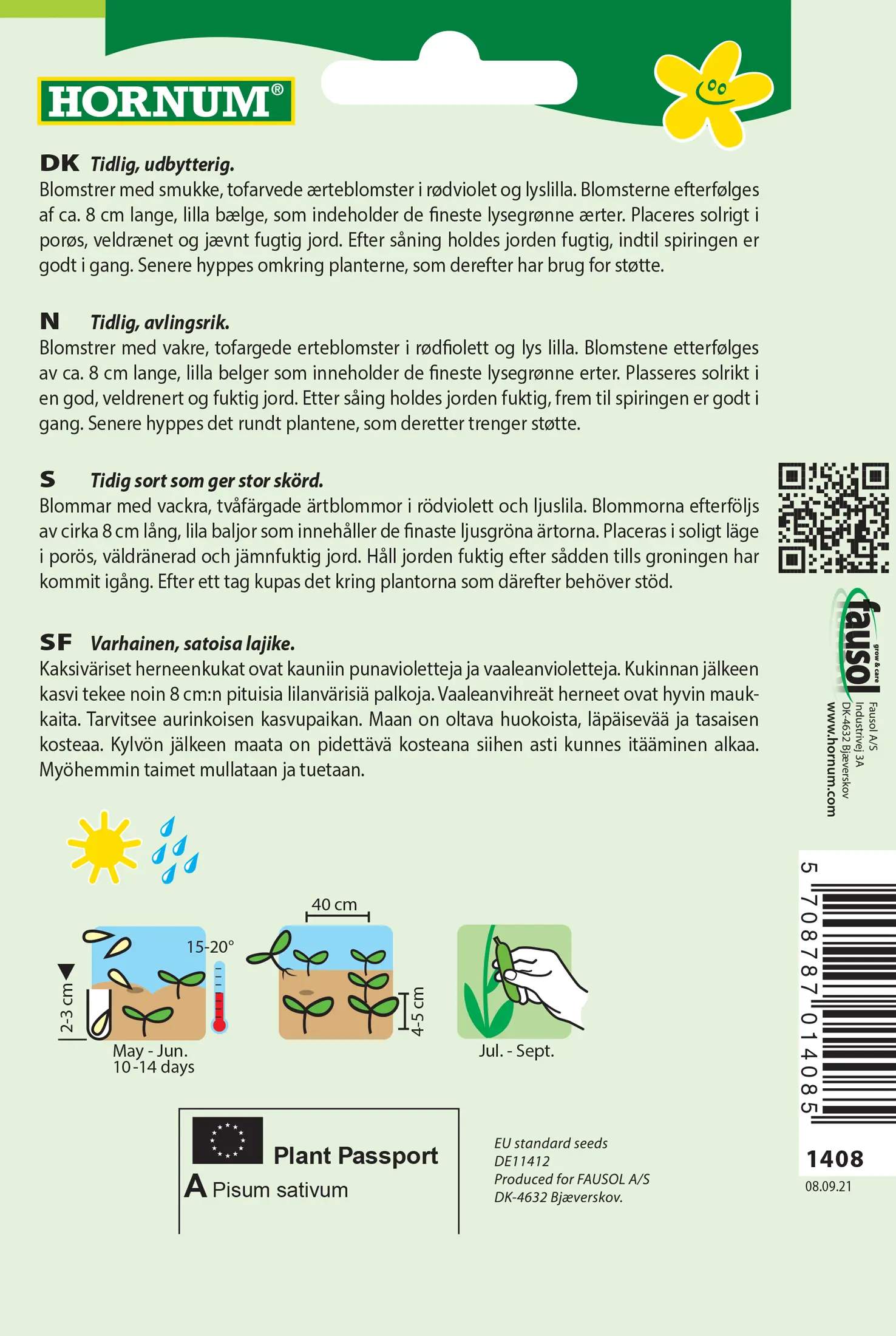 - Fræ Matbaun Pisum sativum Blauwschokker
