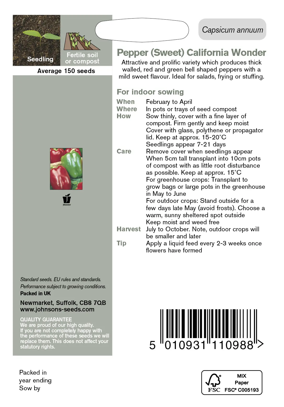 - Fræ Pepper (Sweet) California Wonder