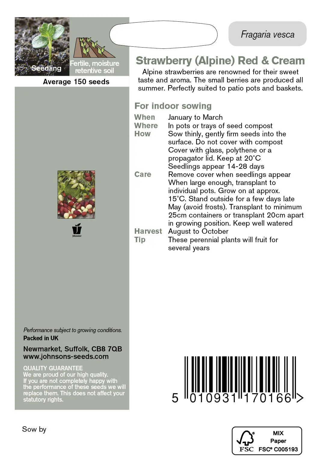 - Fræ Strawberry (Alpine) Red & Cream