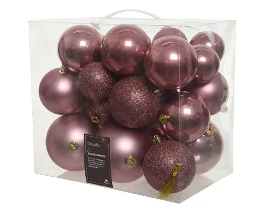 Jólakúlur 26stk í boxi bleikar