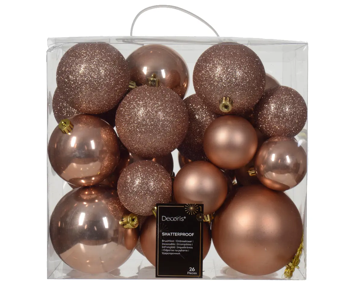 Jólakúlur 26stk í boxi brúnbleikar