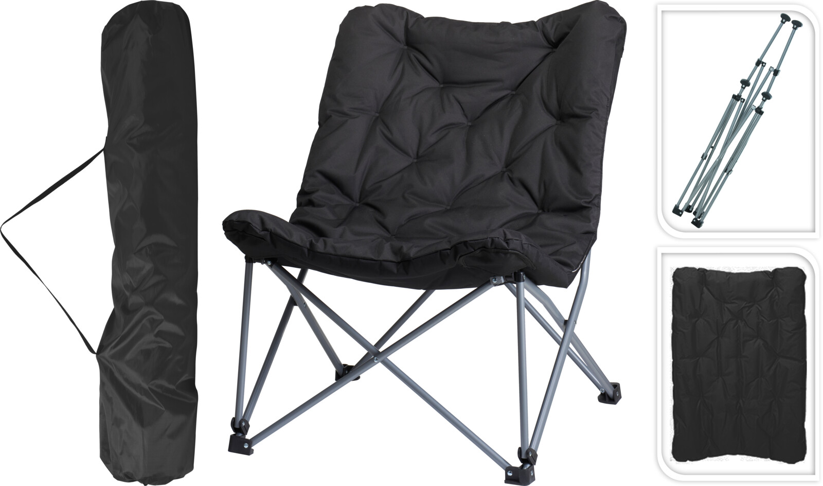 - Tjaldstóll samanbr m/púða svartur