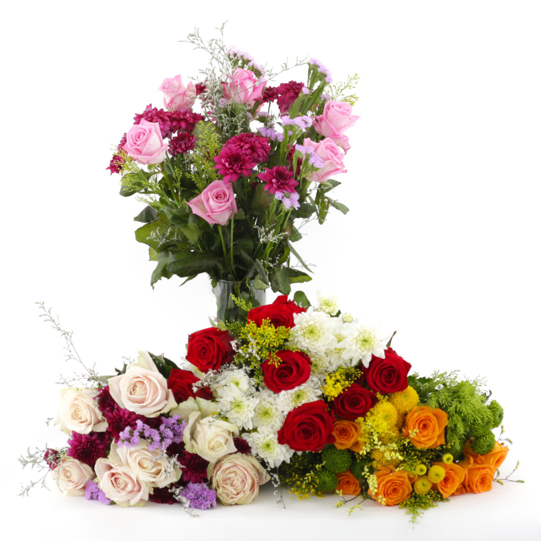 Margir mismunandi litir. Blómaskreytar velja ferskustu blómin hverju sinni.