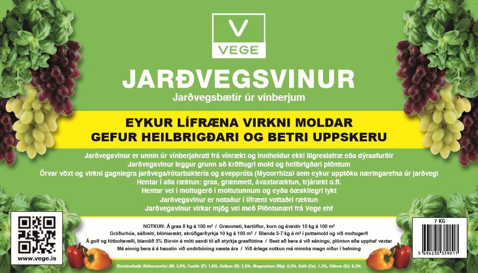 Jarðvegsbætir úr vínberjum. Eykur lífræna virkni moldar. Gefur heilbrigðari og betri uppskeru.