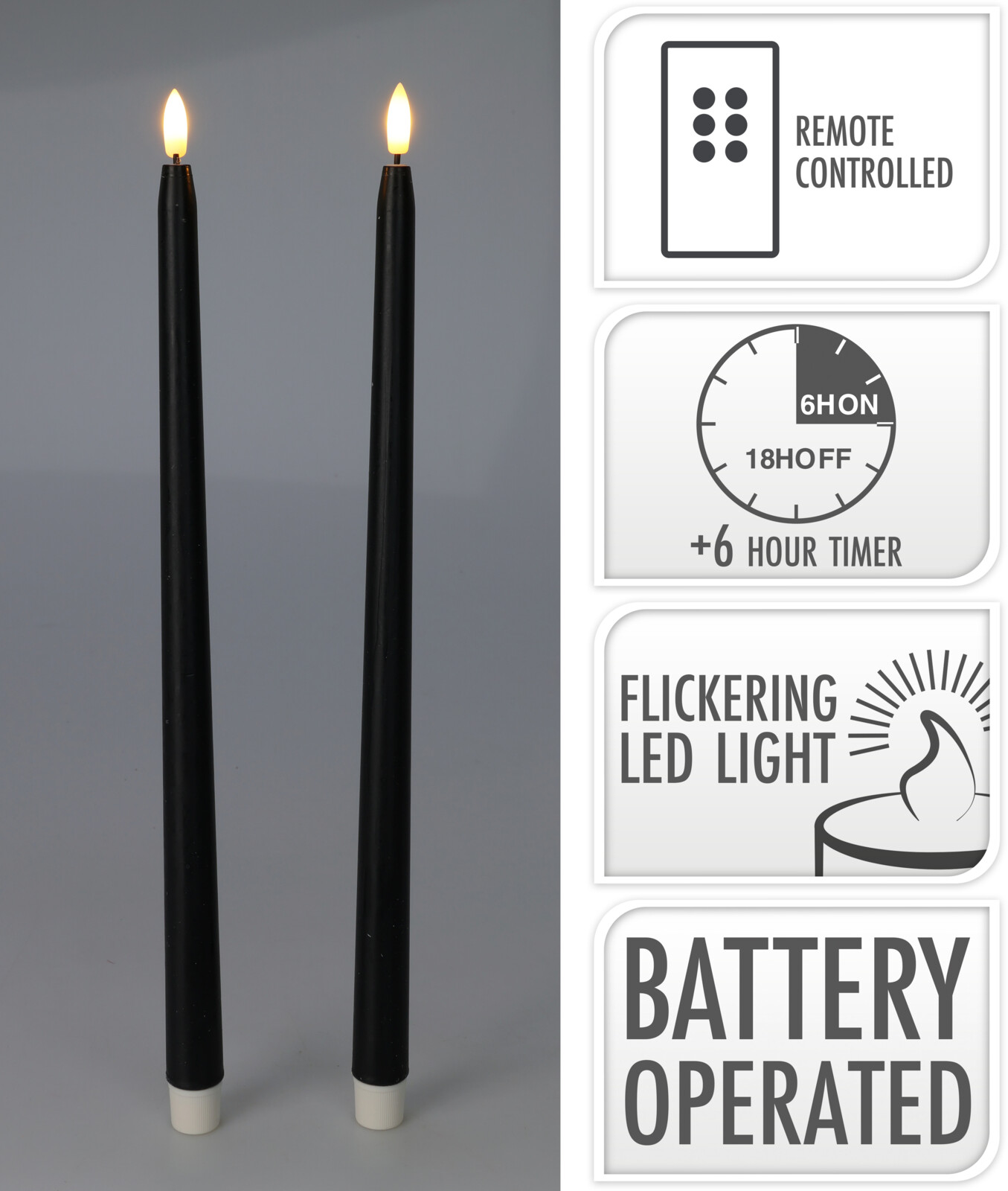 Rafmagnskerti 2stk 38cm svört