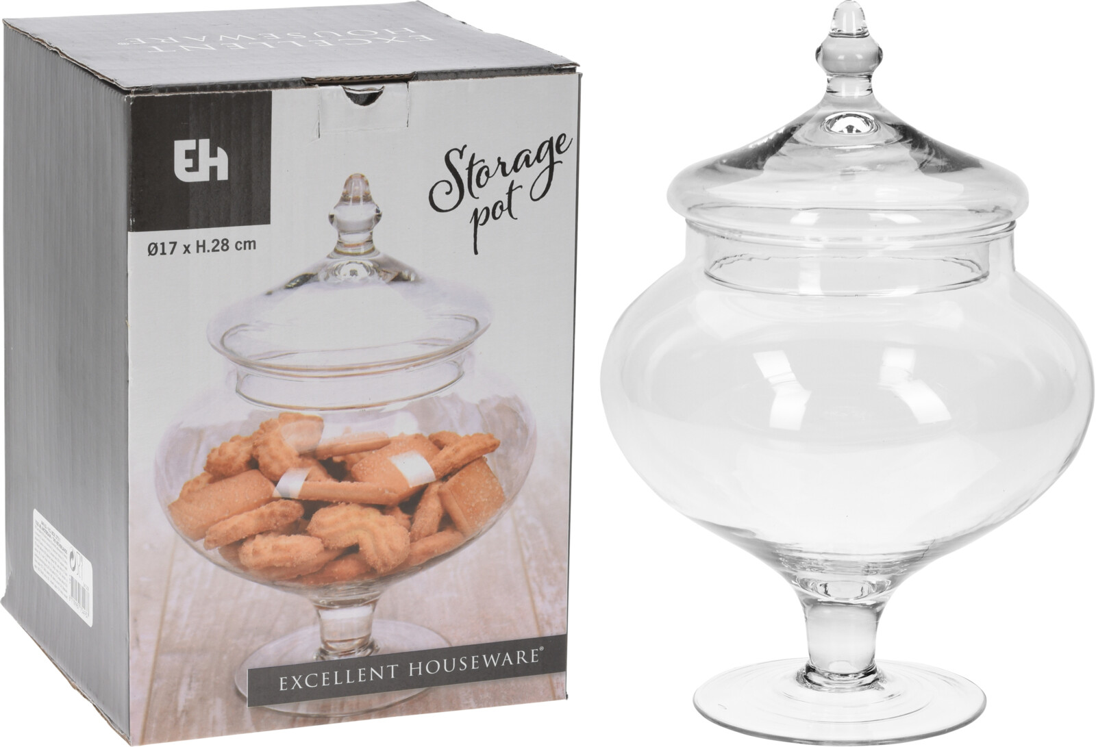 - Glerkrukka á fæti með loki