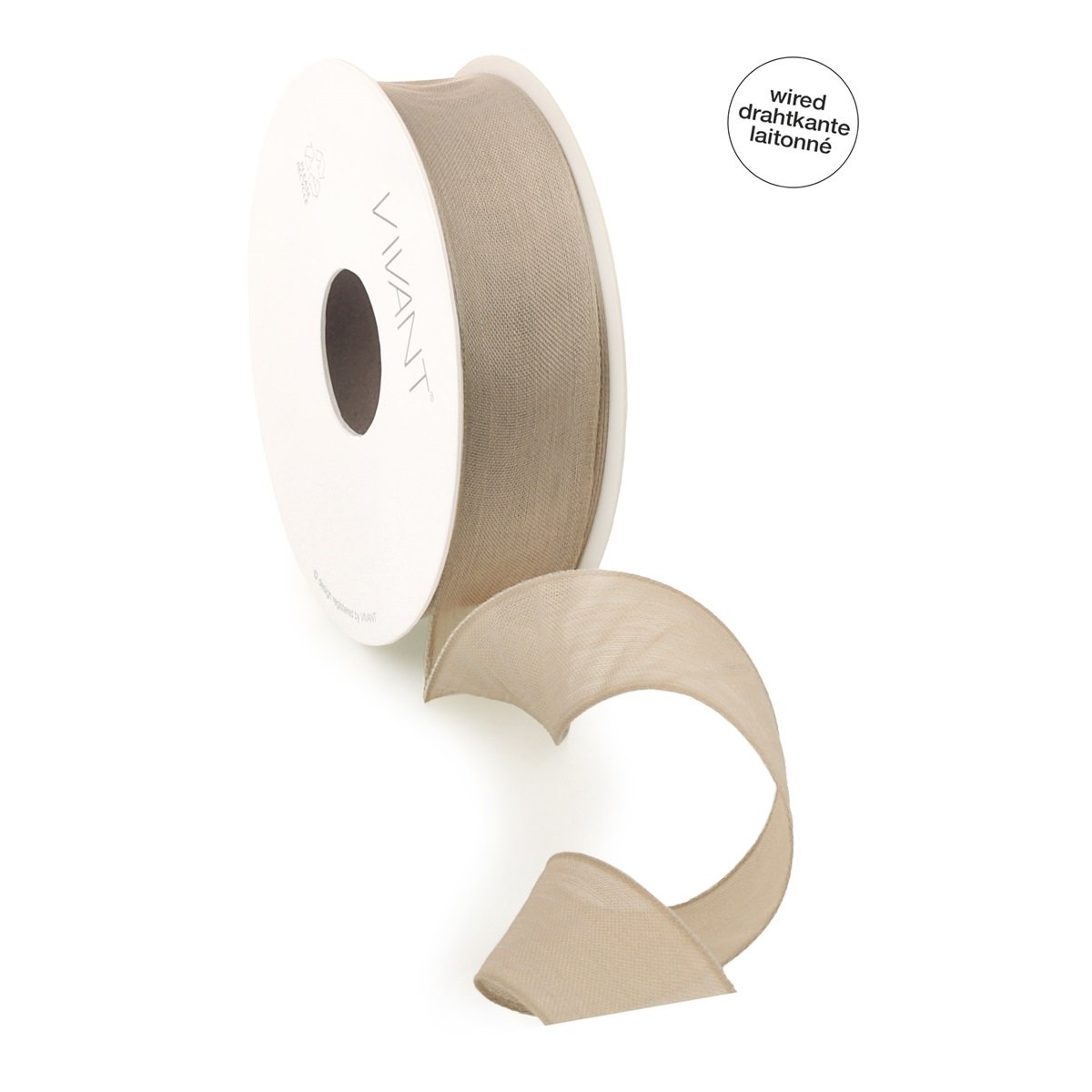 Borði 20m batiste m/vír 25mm sand
