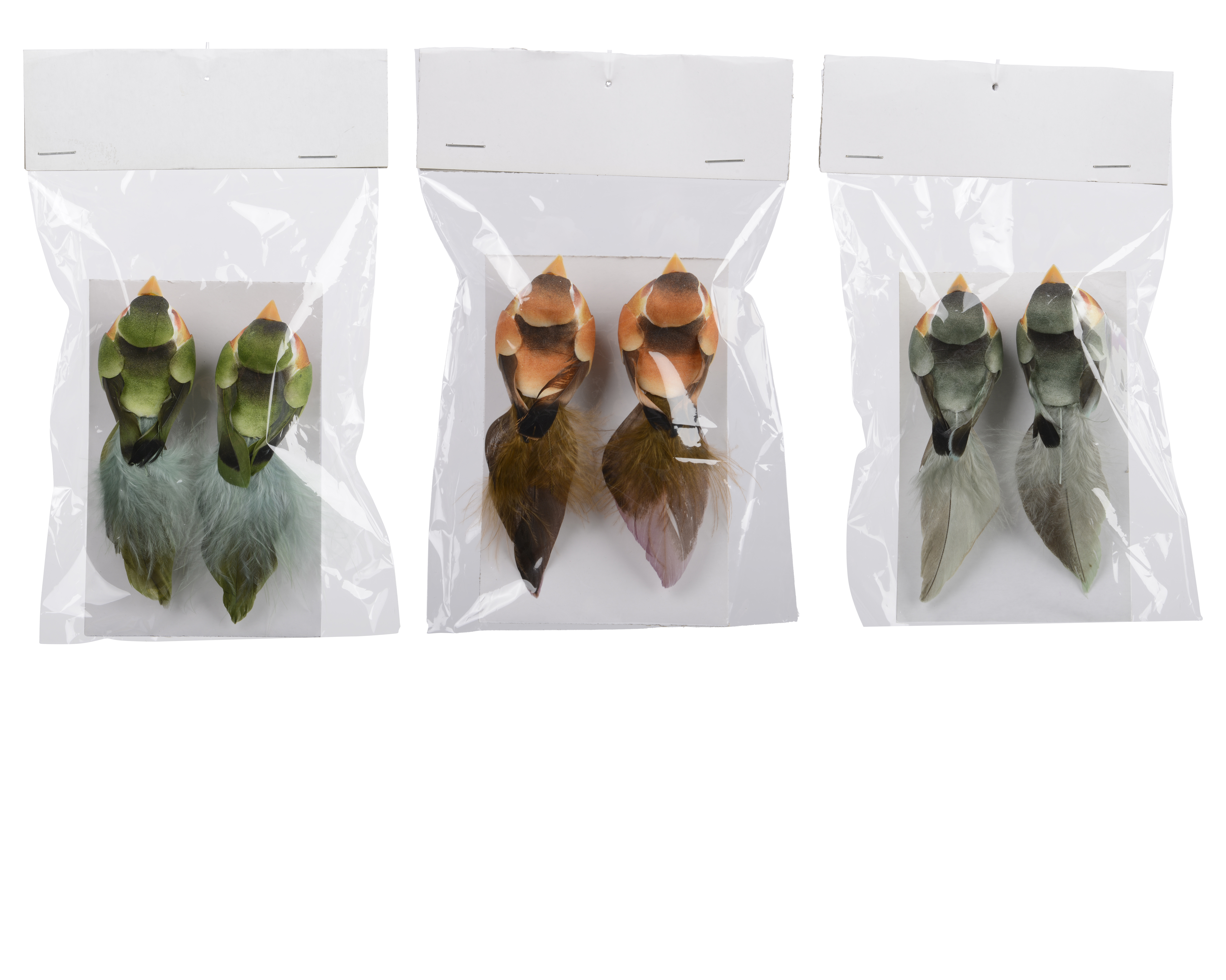 - Fuglar með fjaðrir 11*3*h3,5cm 2stk 3 litir