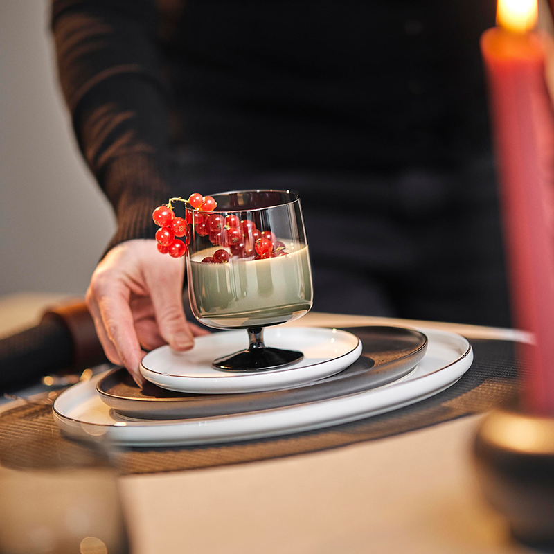 Hvort sem það er fordrykkur, vín eða óáfengar veitingar eins og vatn eða spritzer: Stutt stilkað glerið sem rúmar 0,2 lítra passar ekki bara frábærlega í höndina heldur er einnig hægt að stafla allt að fjórum í hvert annað til að spara pláss.