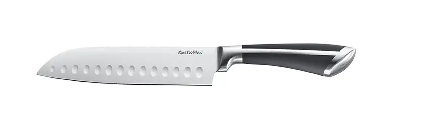 Santoku hnífur úr ryðfríu stáli og þægilegu handfangi.