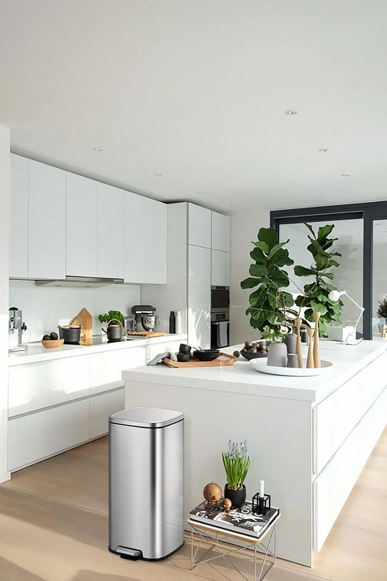 Stílhrein ruslafata úr stáli með 30 lítra hólfi.