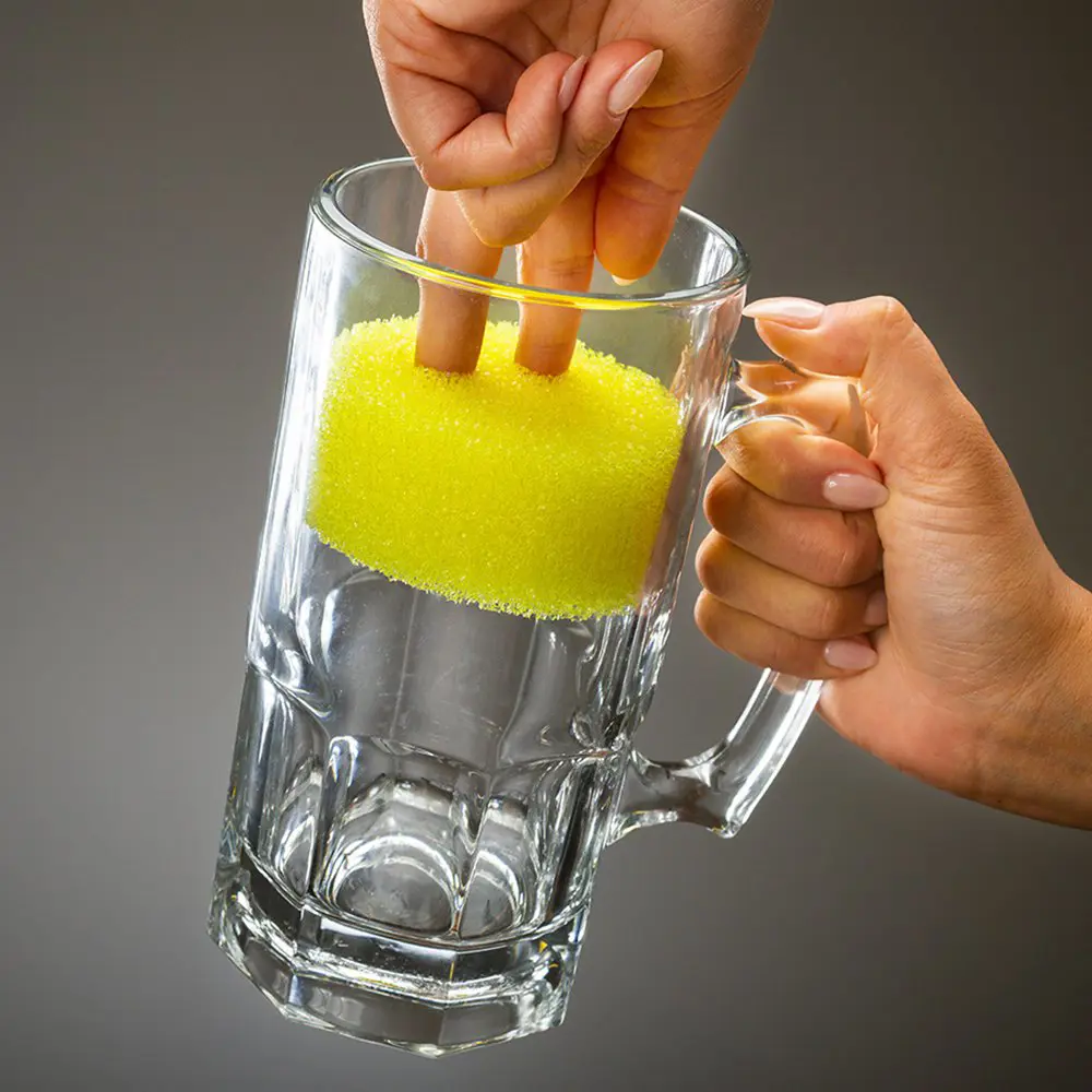 Í heitu vatni verður svampurinn mjúkur, sem hentar vel fyrir létt þrif.