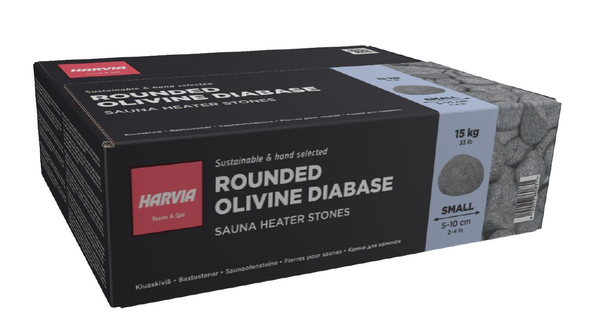 Upplýringar: Ávalir Olivine Diabase sánasteinar líkjast ávölum flúðasteinum. Notkun þessa steins gefur mjúka gæða gufu og vatnið rennur auðveldlega niður í neðri steinalögin. Þannig nær vatnið meira yfirborði og myndar meiri og þéttari gufu. Þessi aðferð við að nota ávala steina á efsta lag hitara virkar í öllum sánasofnum. Við mælum með því að nota hyrnda steina í botnlögin þar sem þeir gefa meira upphitunarflatarmál fyrir vatnið. Þessi samsetning gefur bestu útkomuna fyrir góða og þétta gufu og mikinn hita, sérstaklega í hitara með minni steingetu.