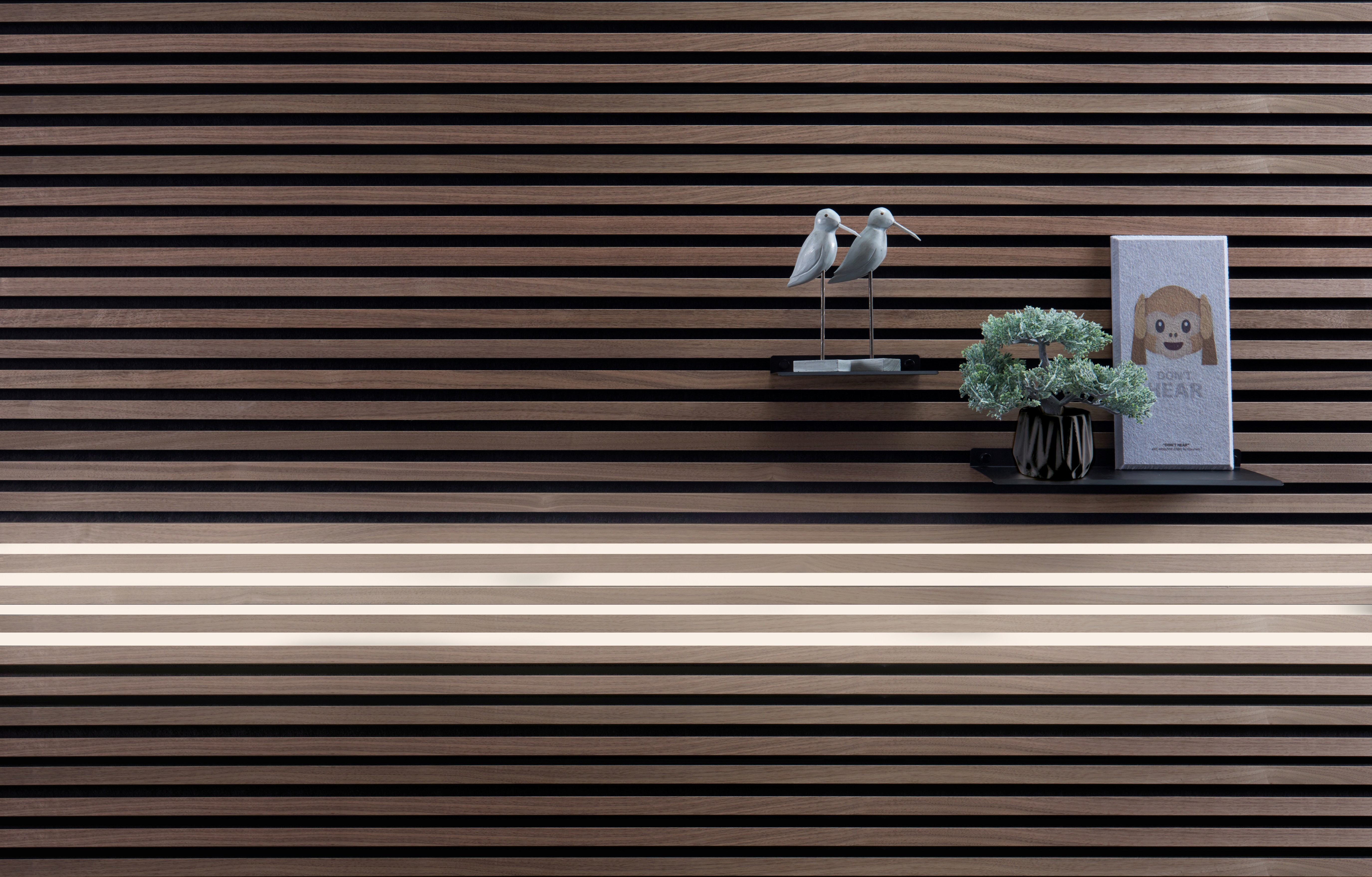 Uppsetning: Er einföld og ljós er smellt inn á milli timburrenningana á hljóðdempandi plötunum.