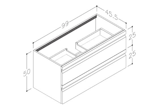 Stílhreinn vaskaskápur með tveim mjúklokandi skúffum. Innrétting kemur samsett. H50xD45xB99