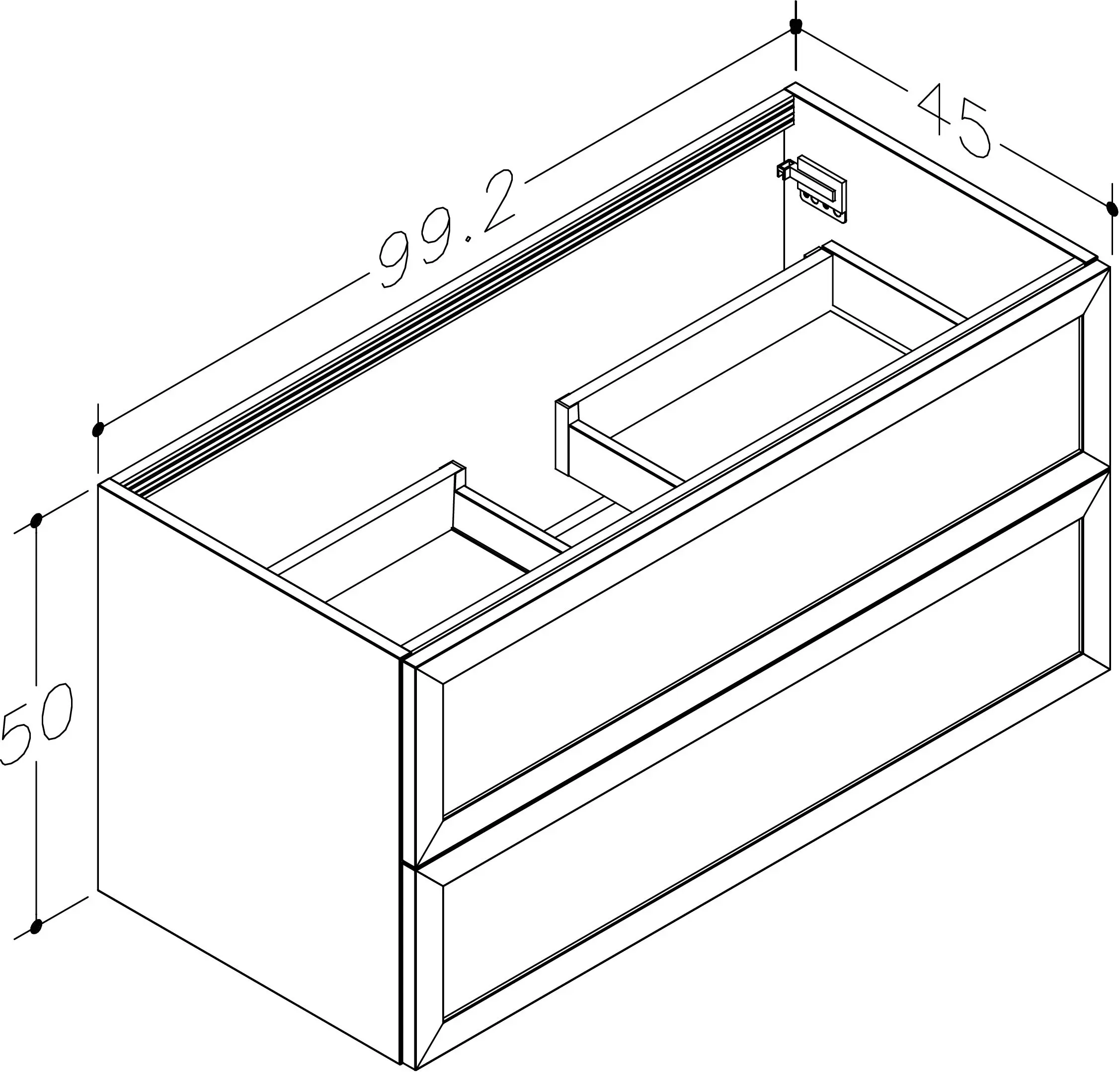 Vaskaskápur RUSTIC m/tveim skúffum reykt eik 99cm