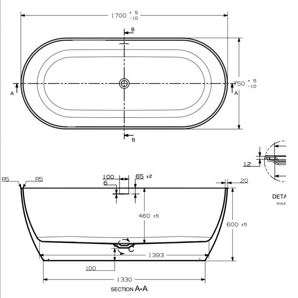 Baðkar frístandandi 170x75 Riba