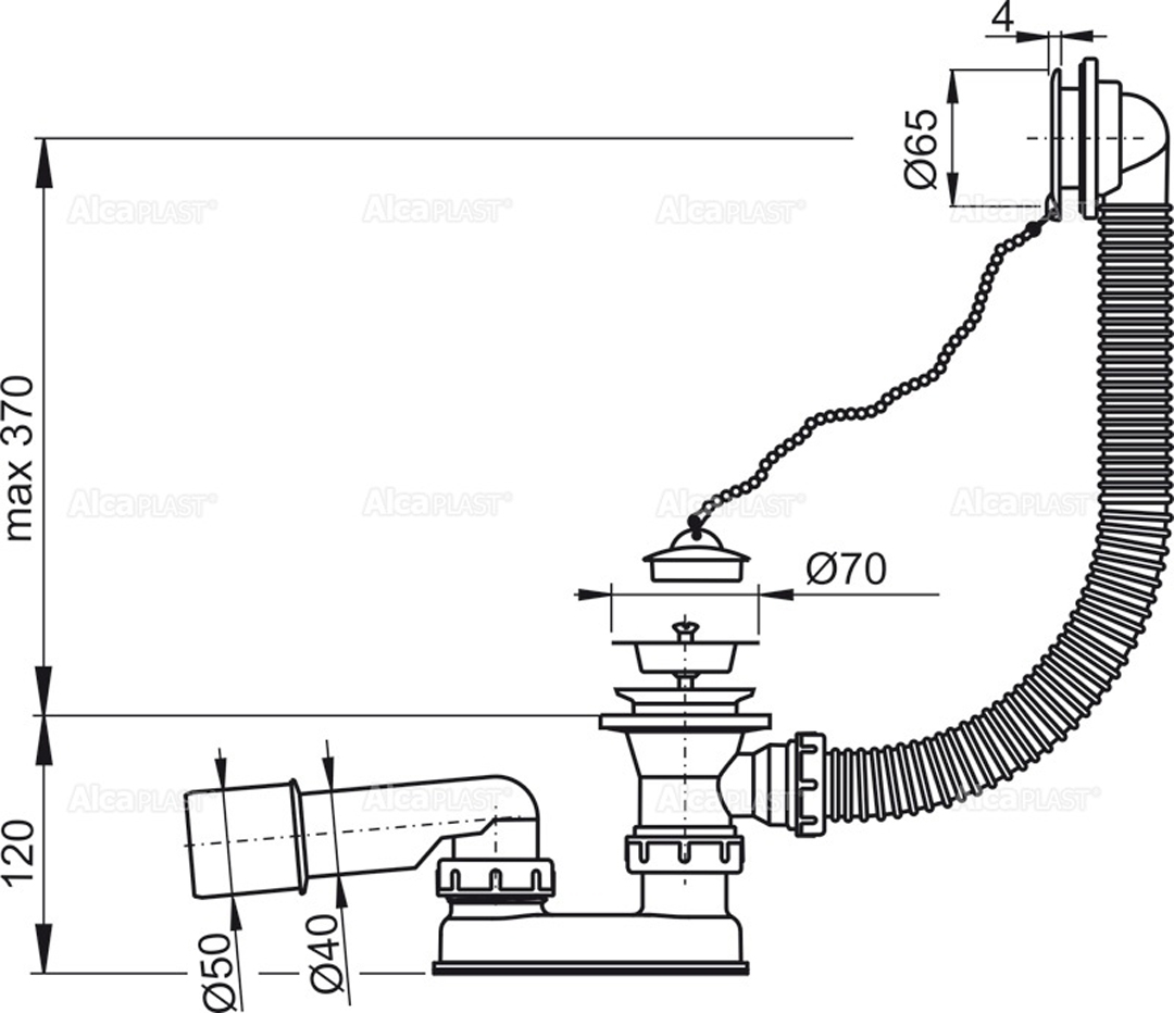 - Baðkars botnventill-með keðju-vatnslás