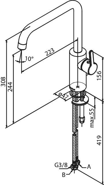 Damixa Silhouet eldhúsblöndunartækið kemur í glæsilegum lit með sveigjanleika og 120° sveiflutakmörkun. Keramískt kassettuhylki tryggir langlífi og áreiðanleika við daglega notkun. Eiginleikar eins og kaldt ræsikerfi og vatnssparandi tæknibúnaður gera tækið hagnýtt og umhverfisvænt. Tæknilegar upplýsingar: • 120° sveiflutakmörkun • Keramík kassetta • Vatnsnotkun: Max 8 l/mín • Kalt ræsikerfi Helstu eiginleikar: • Einföld stjórnun • Nútímaleg hönnun Fylgihlutir: Engir fylgihlutir