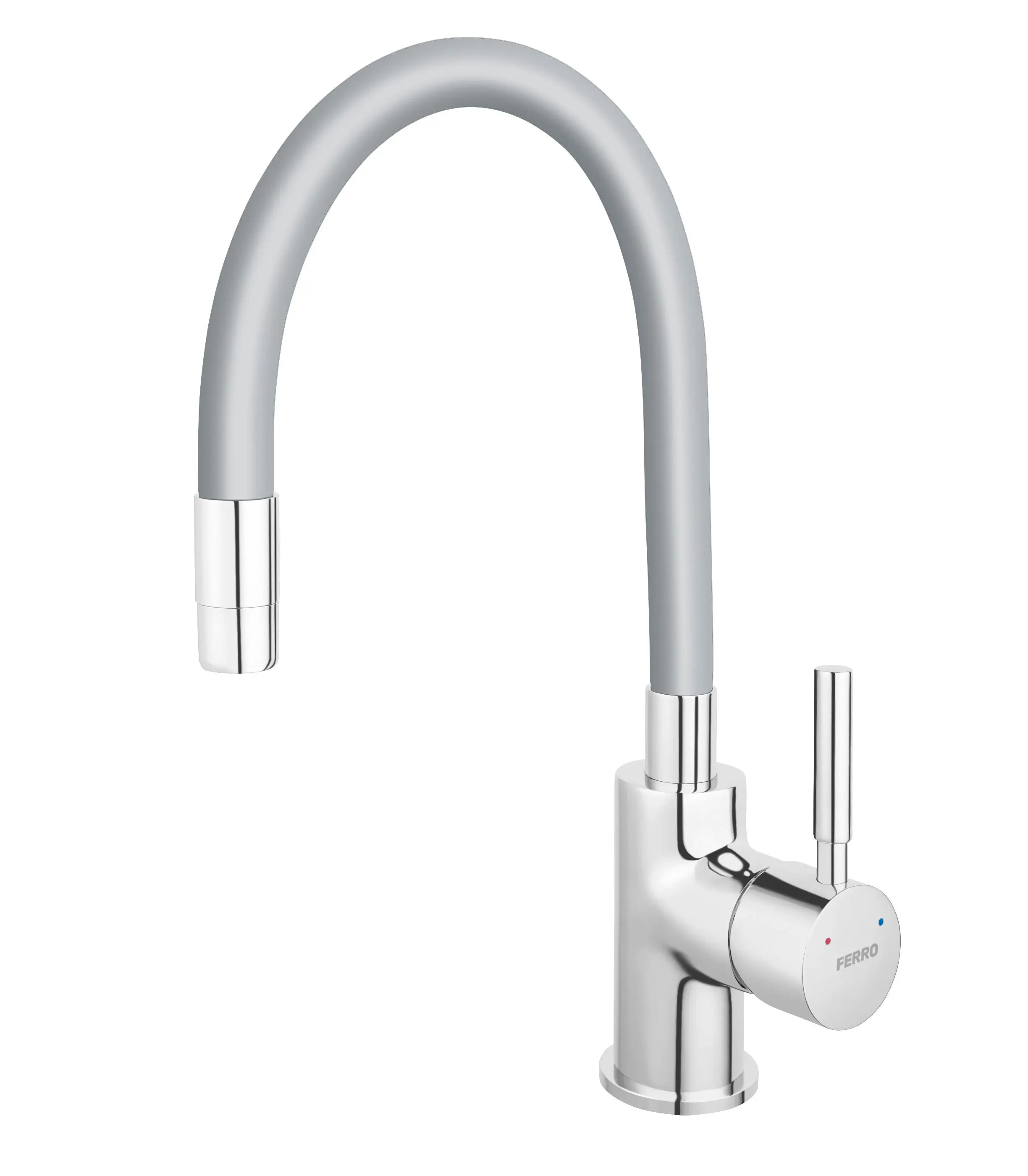 Ferro Zumba í silfri sameinar fallega áferð og hagnýta sveigjanleika. Keramik kassetta tryggir mjúka stjórnun og áreiðanlega notkun í langan tíma. Tæknilegar upplýsingar: • Sveigjanlegur stútur • Keramik kassetta • Vatnsnotkun: Max 8 l/mín Helstu eiginleikar: • Glæsileg silfuráferð • Auðveld notkun með sveigjanlegum stút Fylgihlutir: Engir fylgihlutir