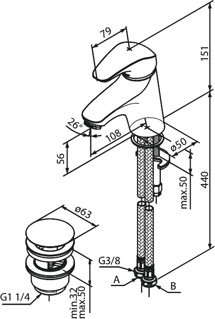- Handlaugartæki Damixa Space með smellutappa 10821
