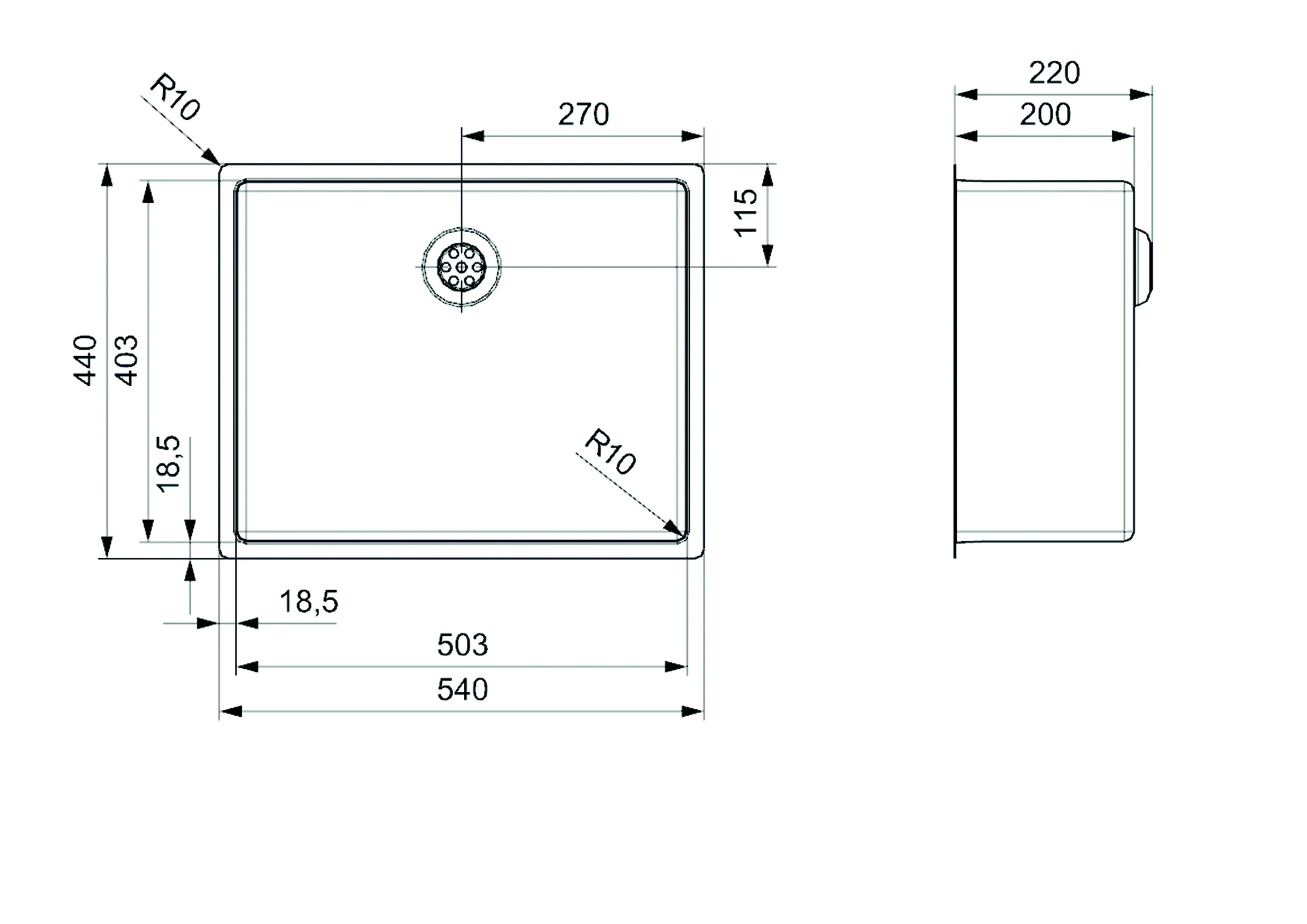 Vaskur eldhús New York 500x400x180 mm - R27646