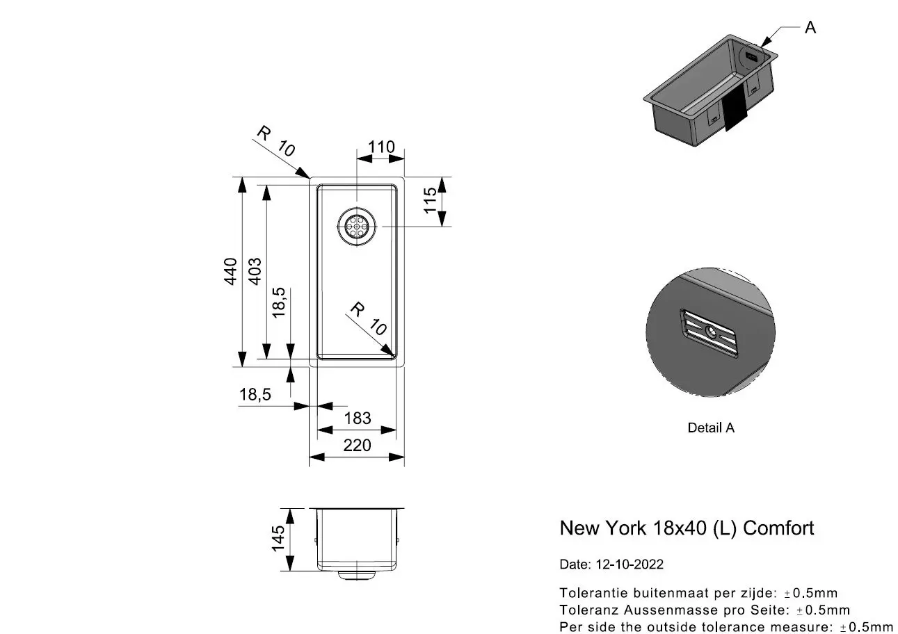 Vaskur New York 180x400x165mm