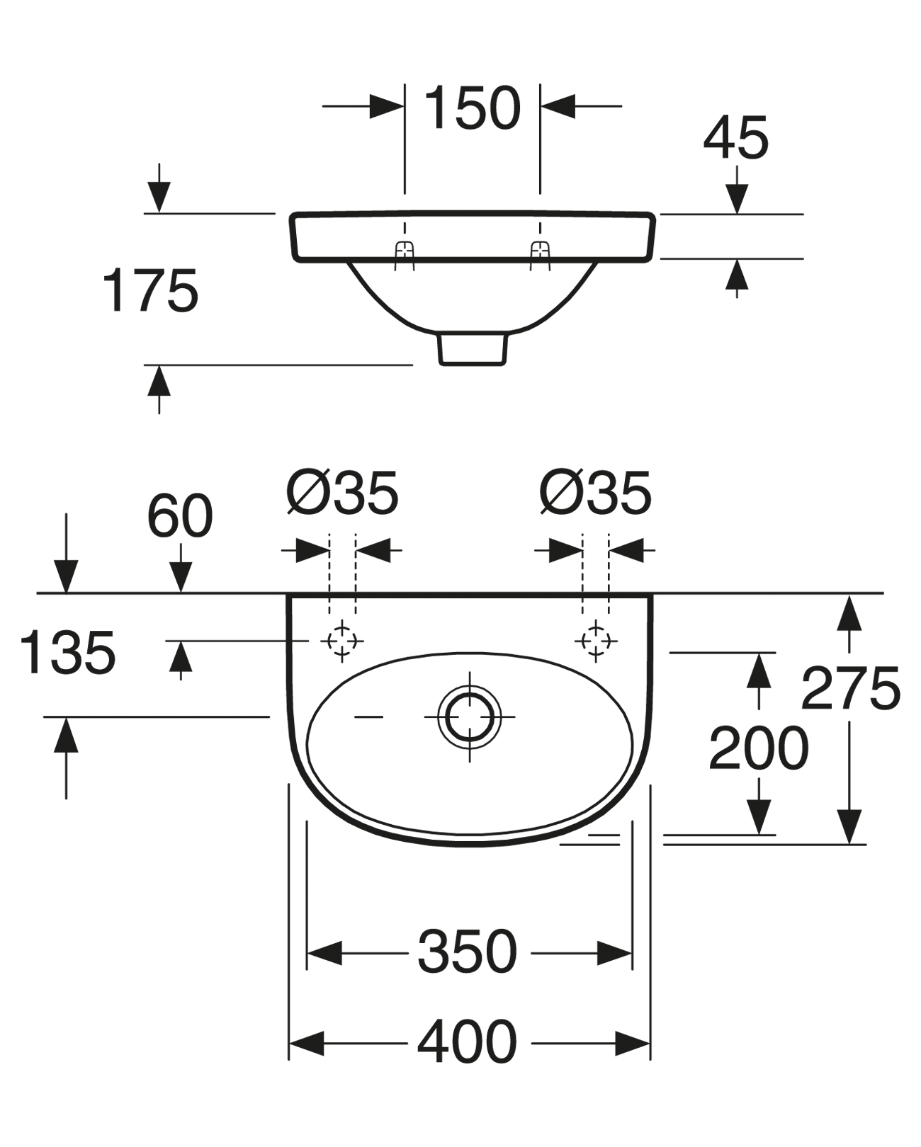 - Gustavsberg vegghandlaug með yfirfalli 40x27